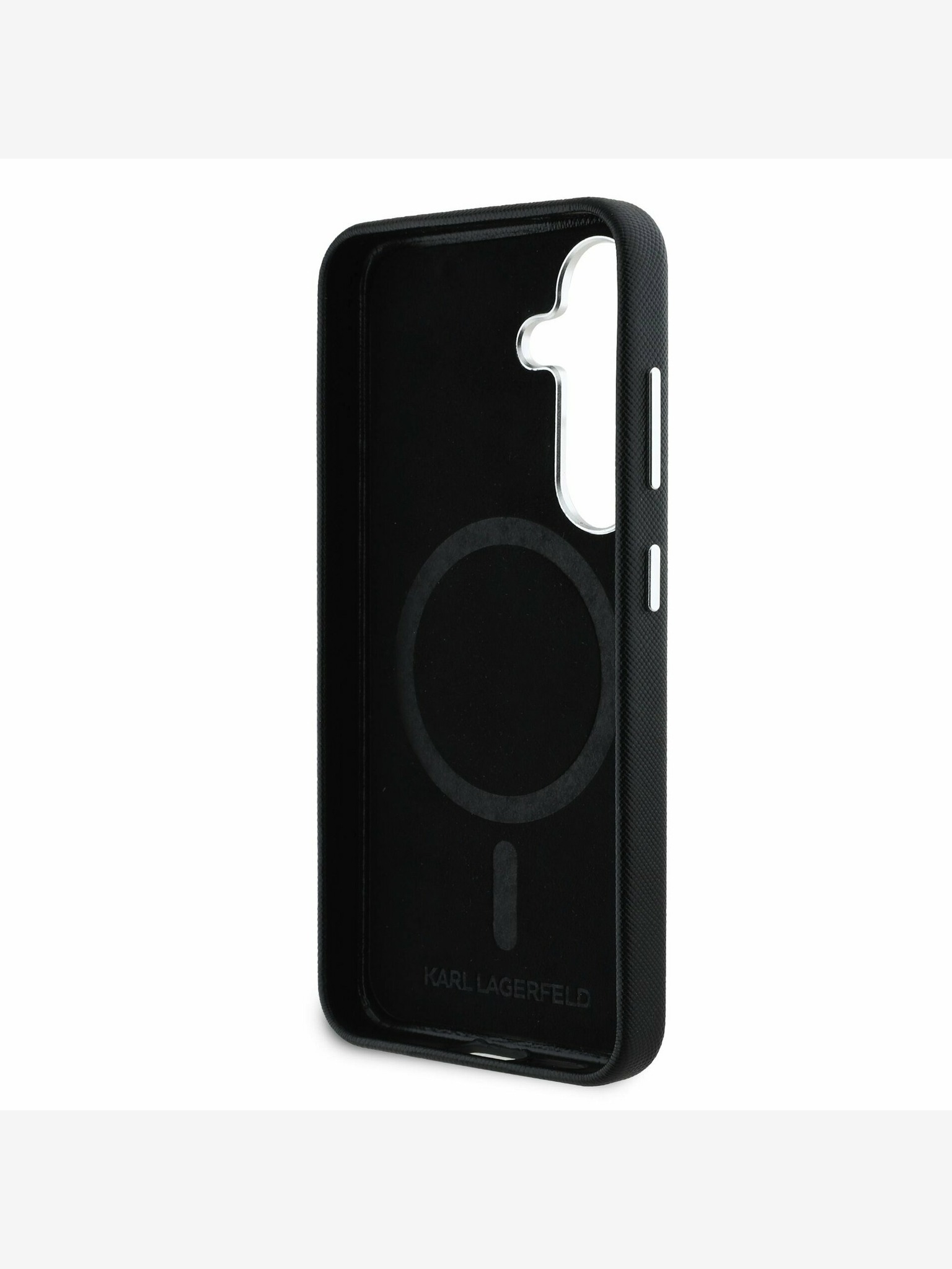Karl Lagerfeld PU Saffiano fém logóval és kerettel ellátott fém hátlap Samsung Galaxy S25+ fekete színű borítóhoz