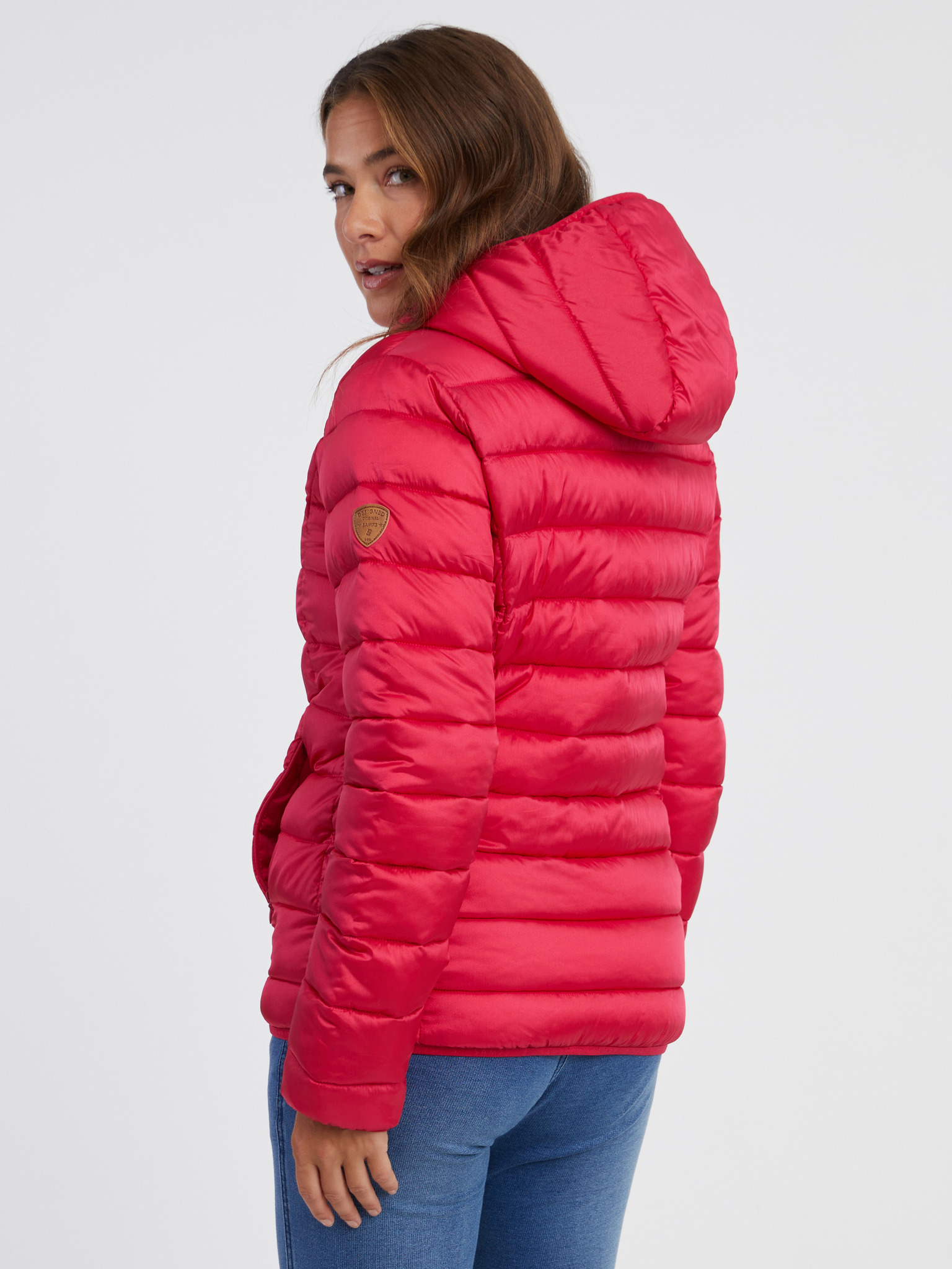 Barna női steppelt télikabát kapucnival SAM 73 Gede