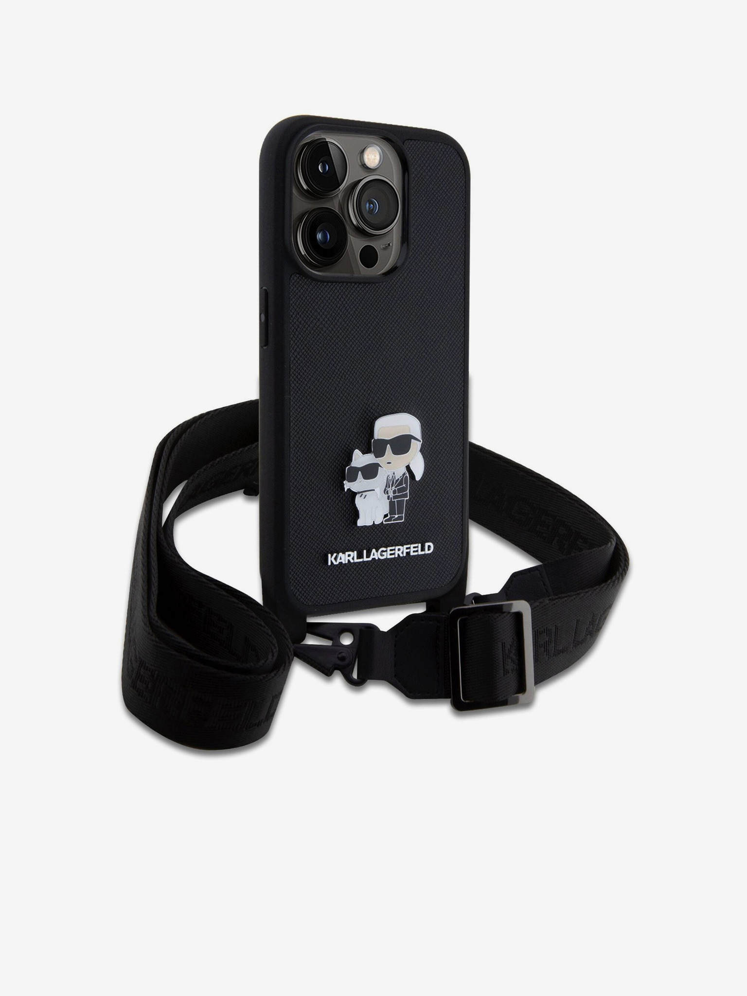 Karl Lagerfeld Érdes PU K&CH Fejek Hátlap iPhone 15 Pro-hoz Fekete
