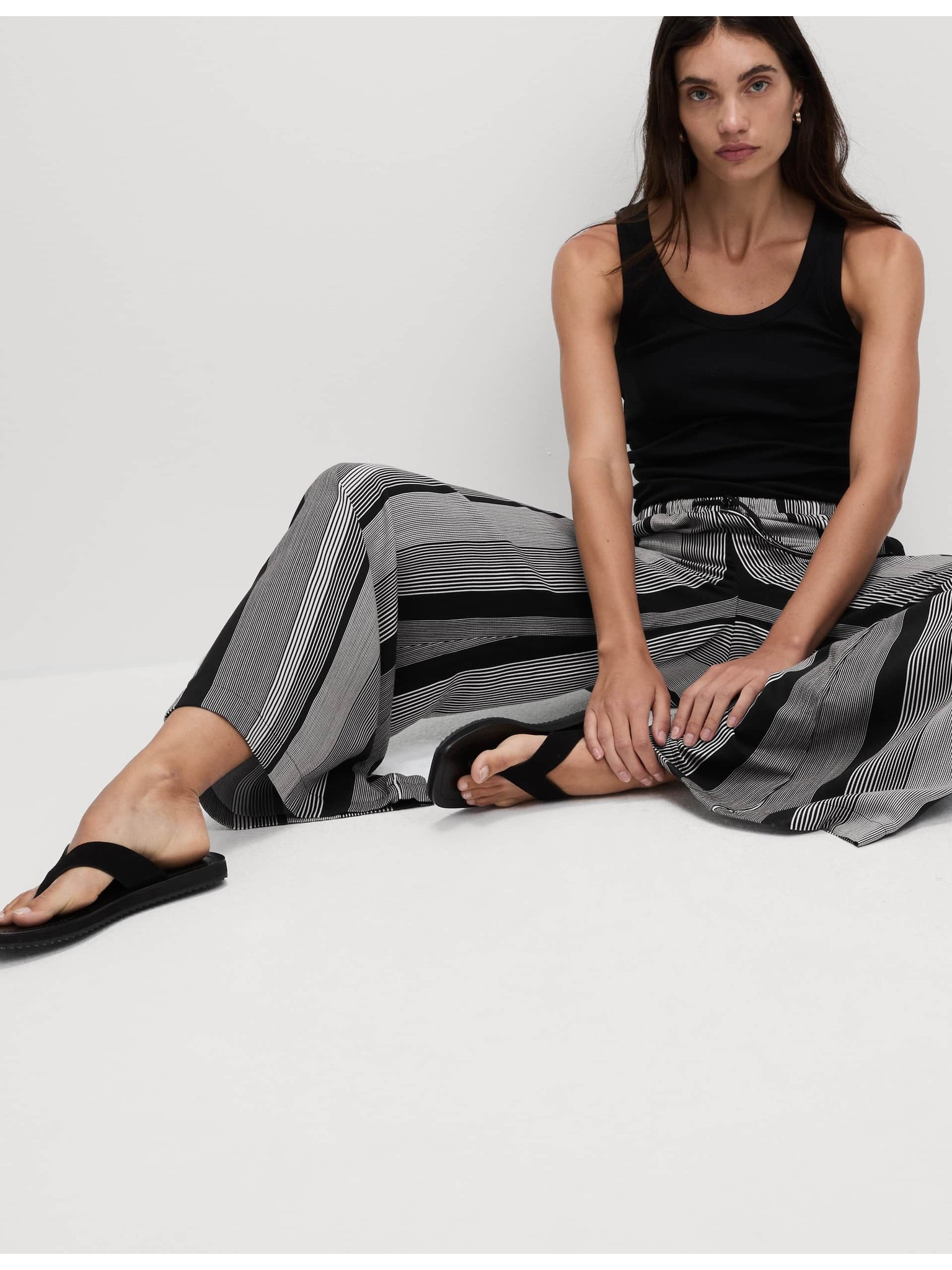 Szövött pliszírozott nadrágszoknya széles szárral Marks & Spencer fekete
