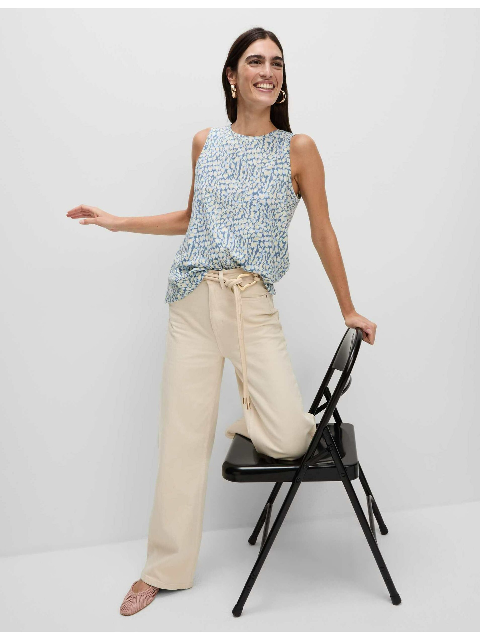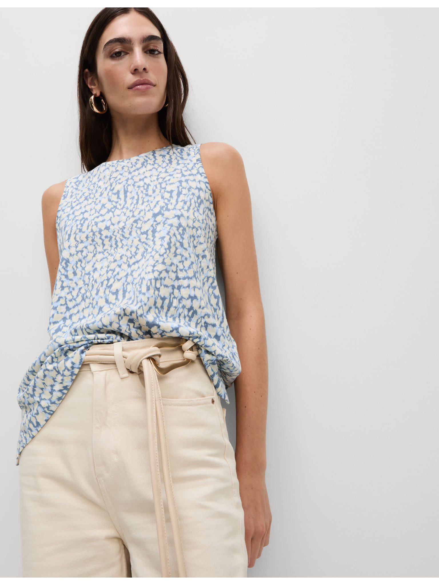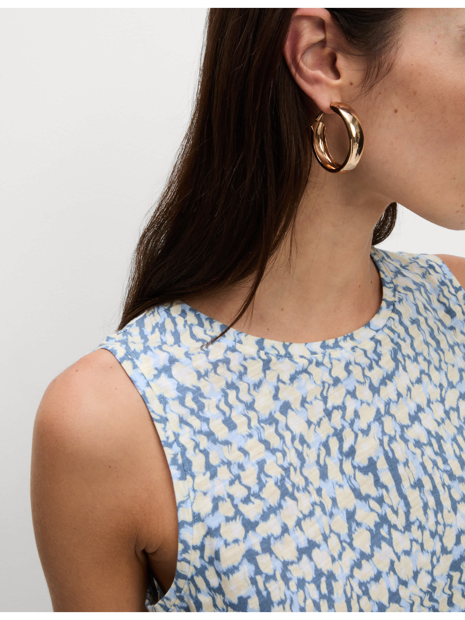 Marks & Spencer kék szabadidős ujjatlan felső magas pamuttartalommal és nyomott mintával