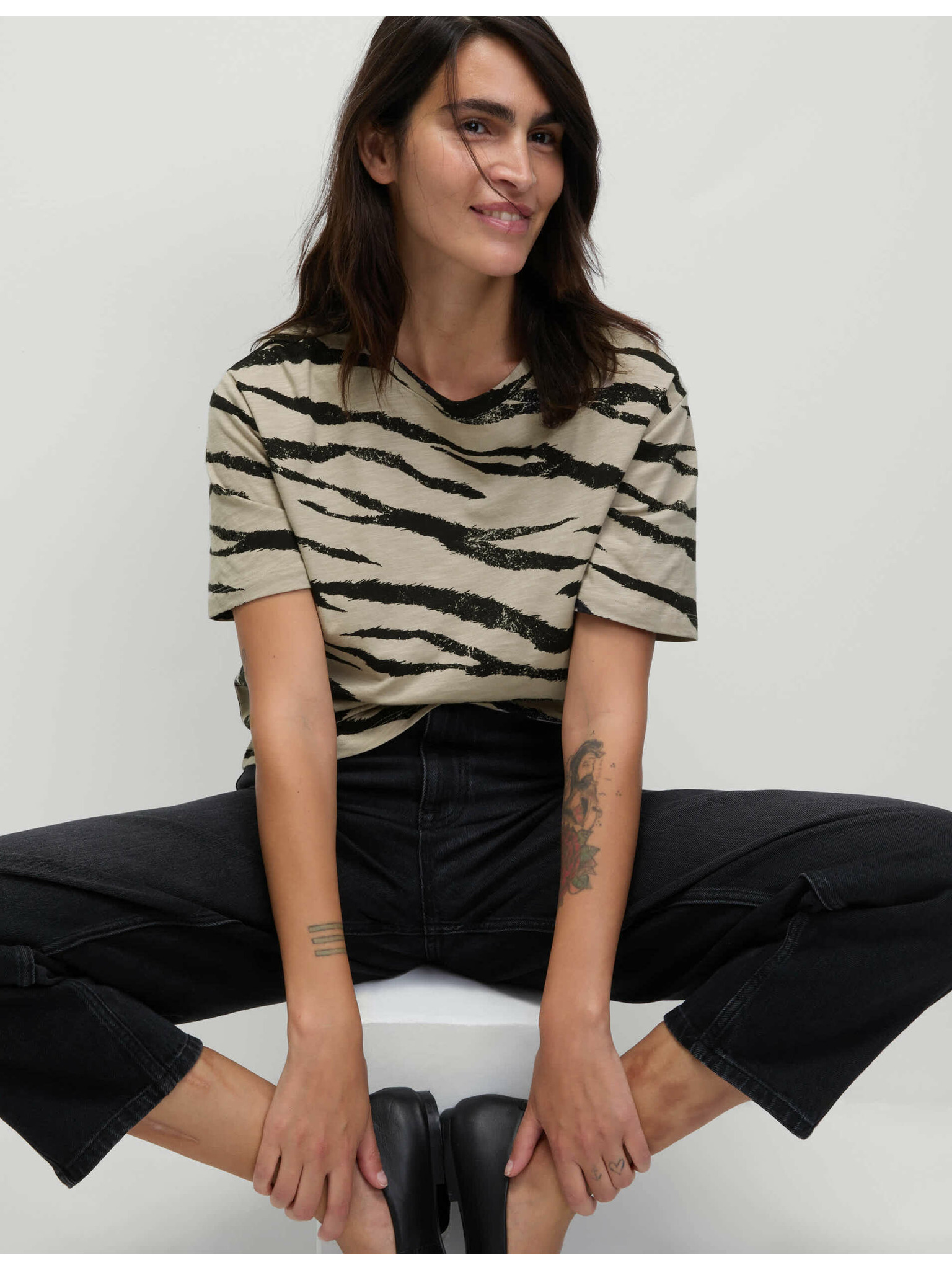 Laza póló pamut és modal keverékből Marks & Spencer fekete