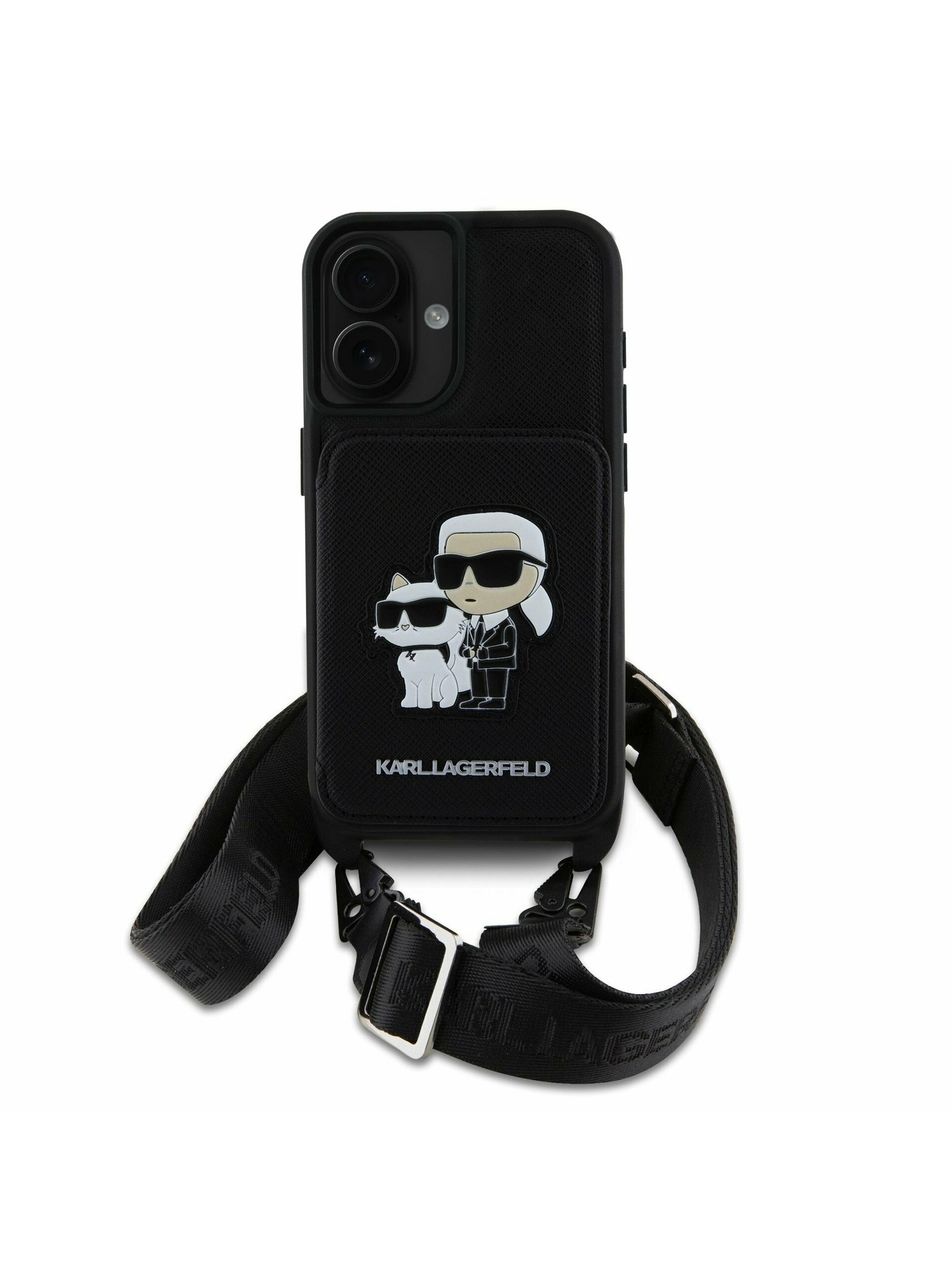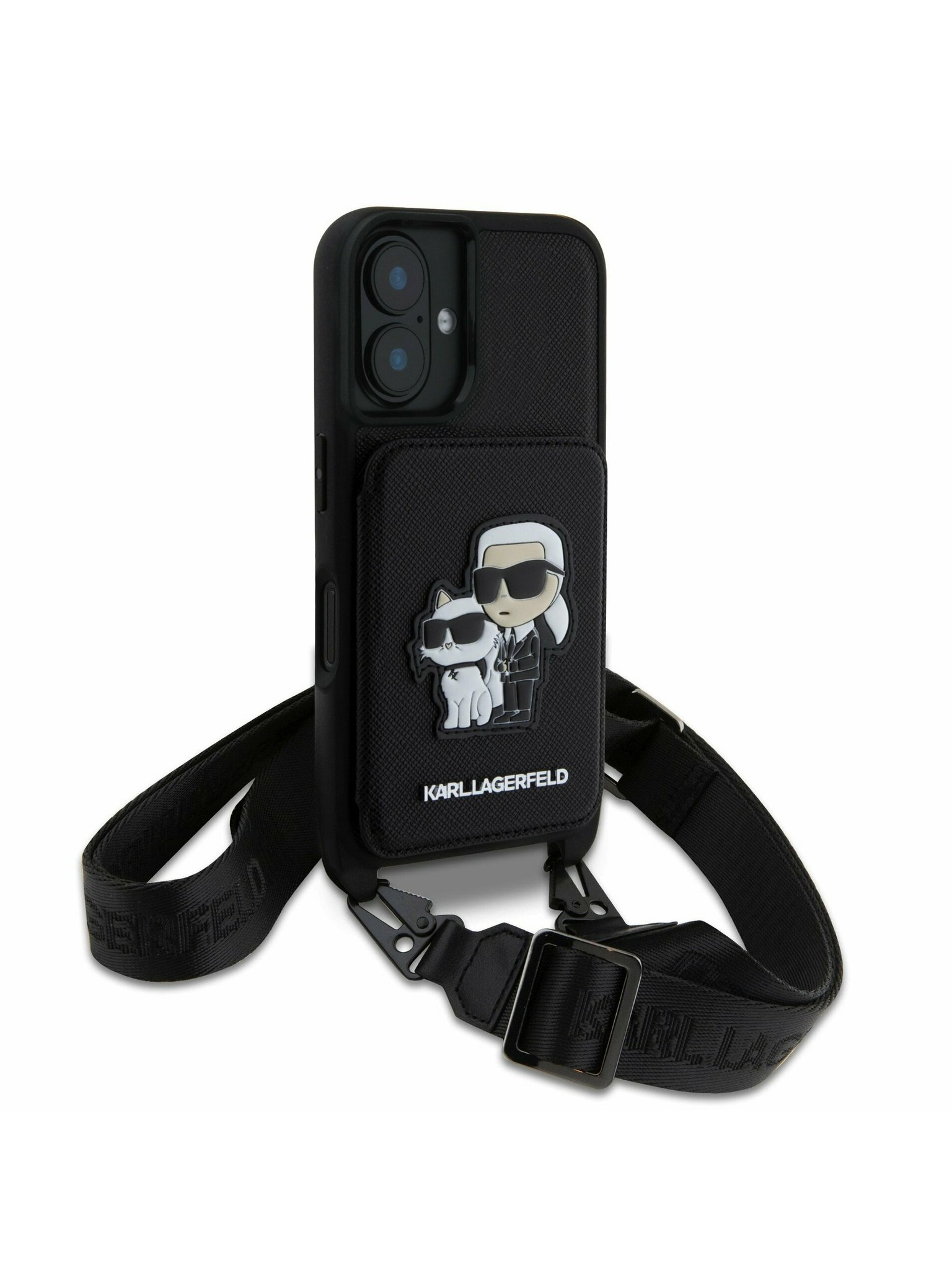 Karl Lagerfeld IML Aquarelle Karl and Choupette Hátlap iPhone 15 - Fekete