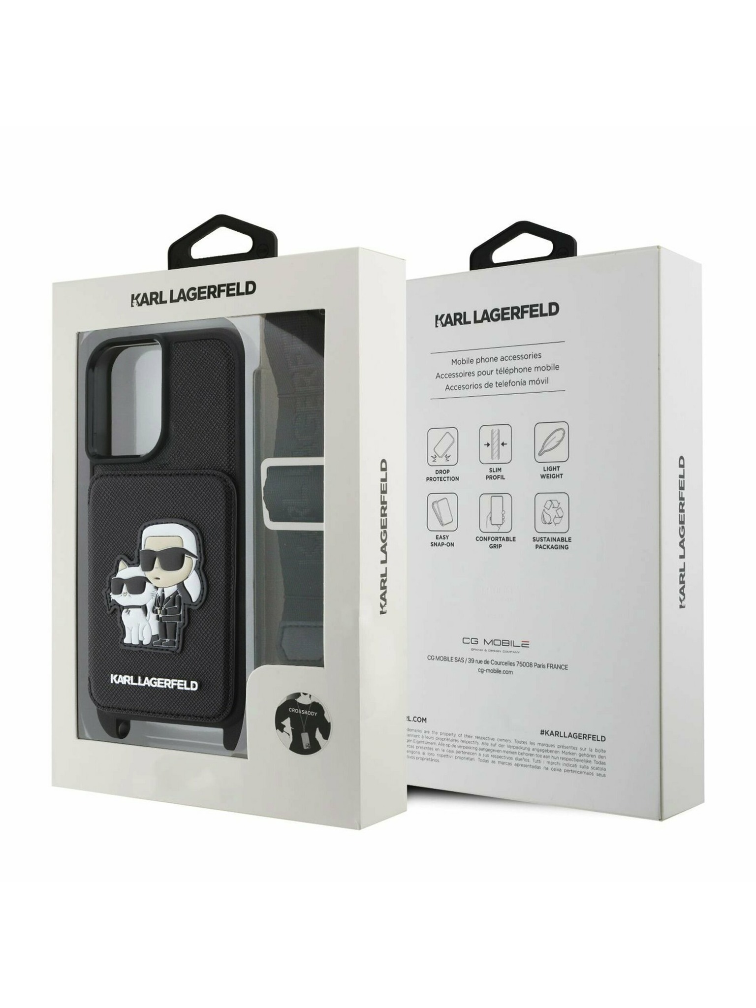 Karl Lagerfeld IML Csillogó Karl és Choupette Vázlat MagSafe Hátlap iPhone 15-höz Fekete