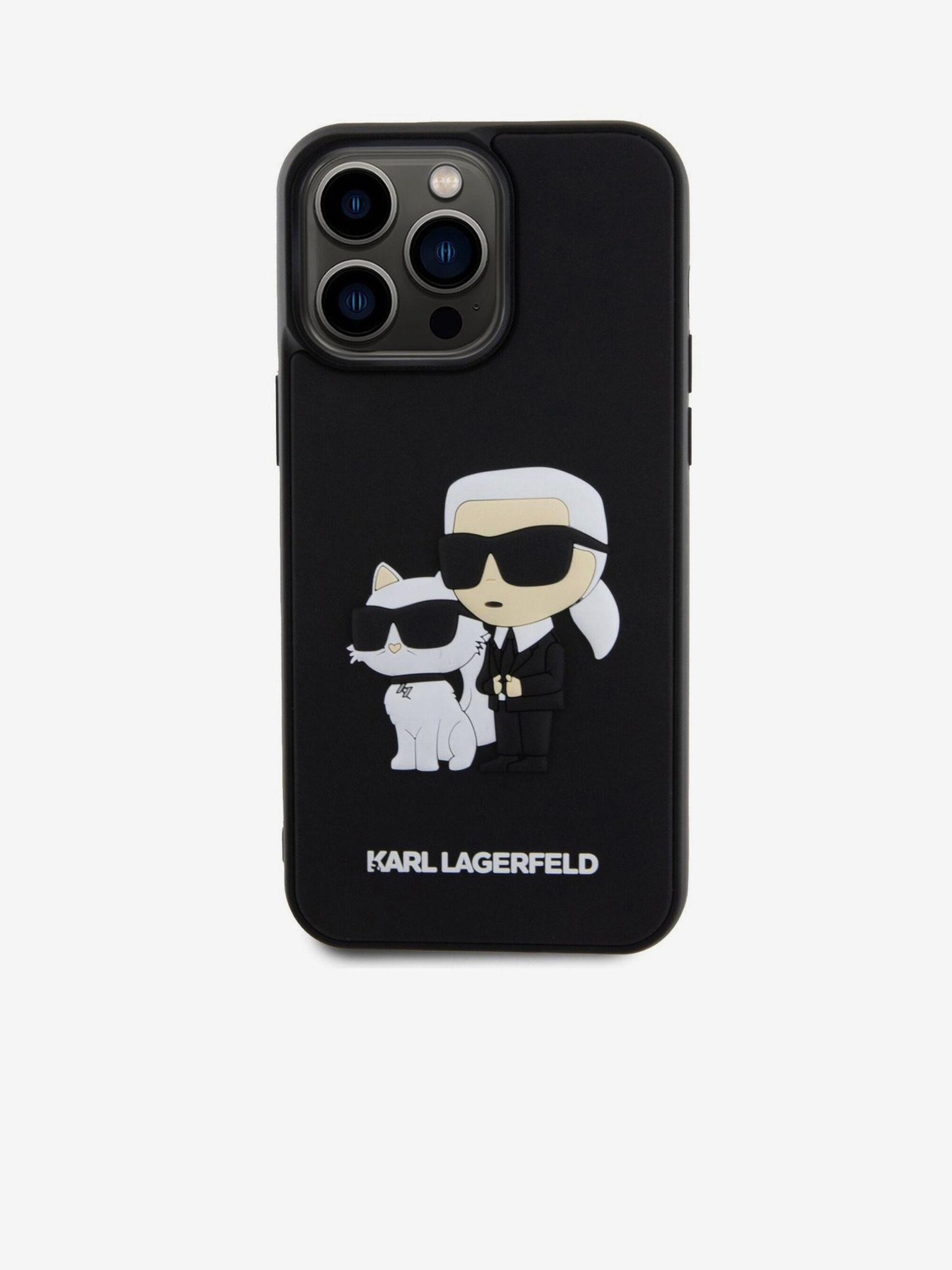 Karl Lagerfeld 3D Gumi Karl and Choupette Hátlap iPhone 16e-hez Black