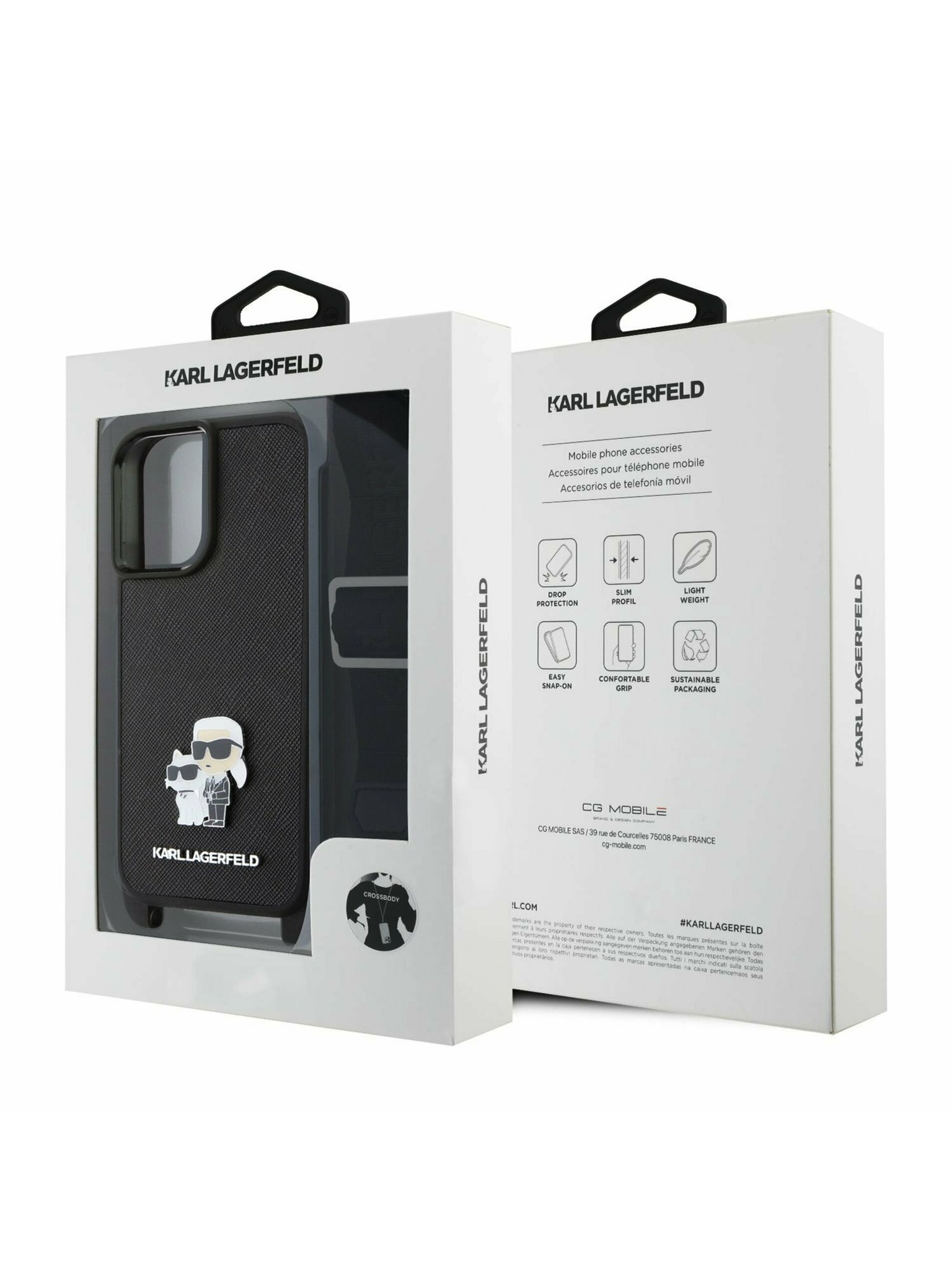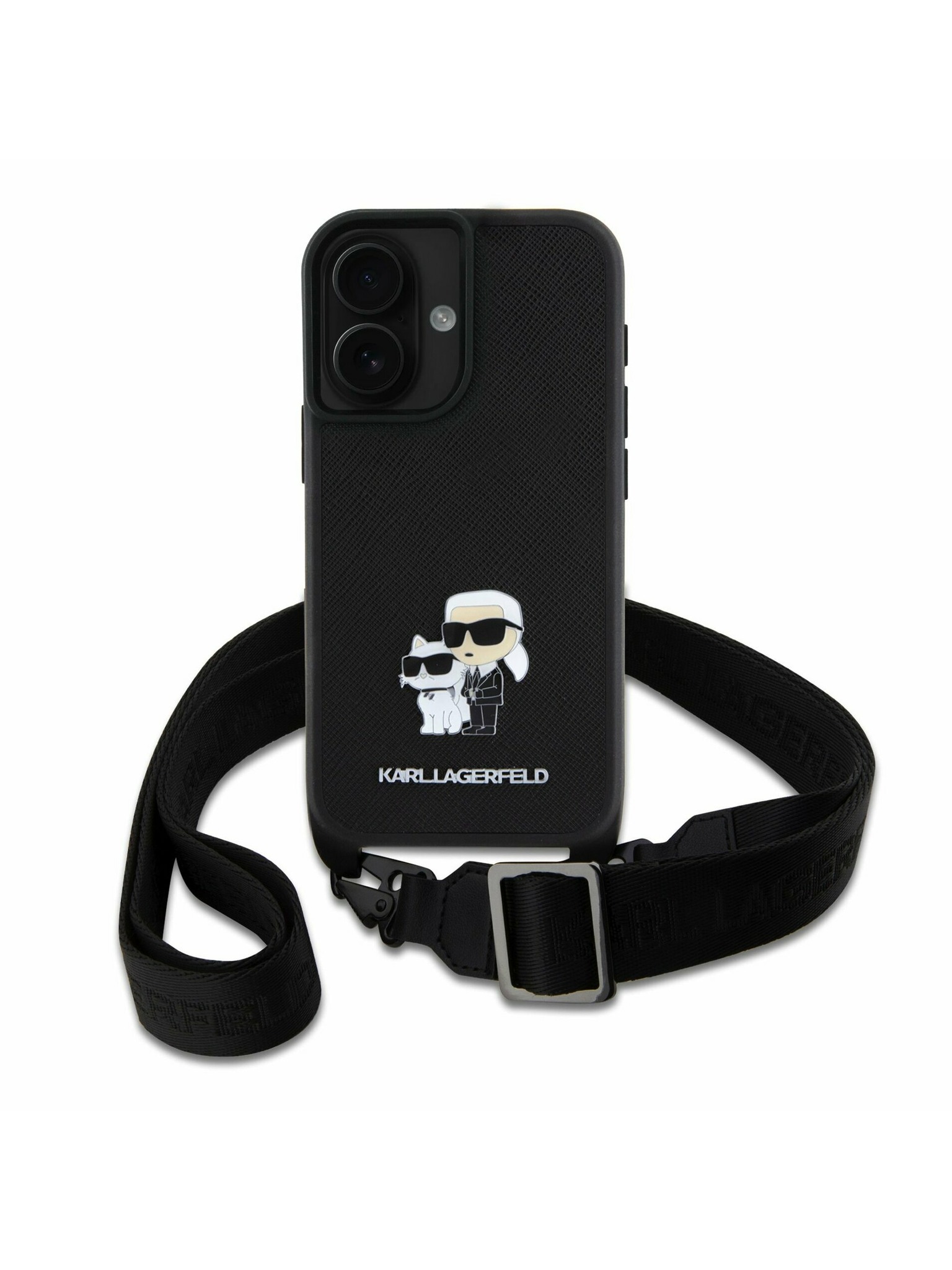 Karl Lagerfeld IML Aquarelle Karl and Choupette Hátlap iPhone 15 - Fekete