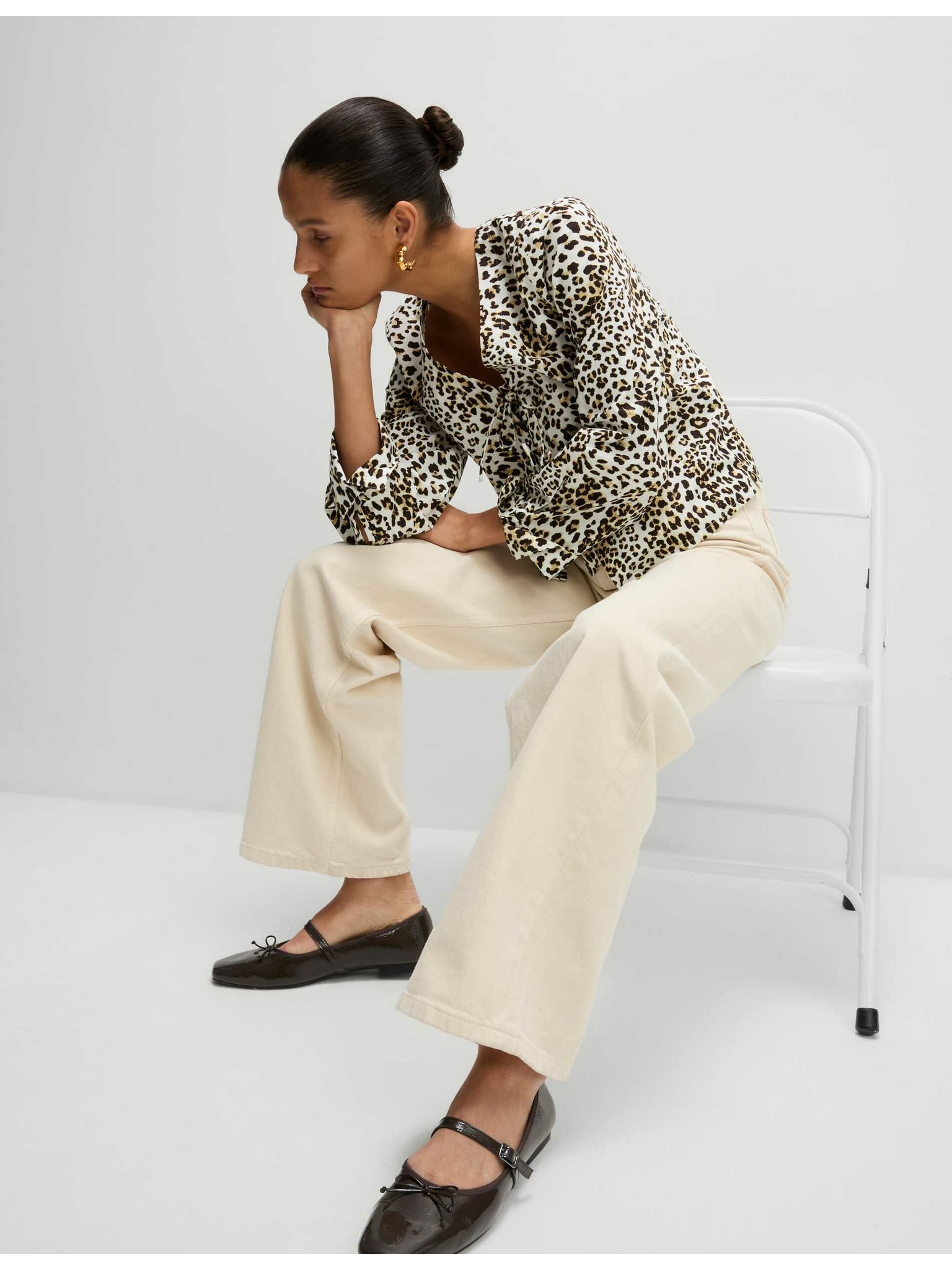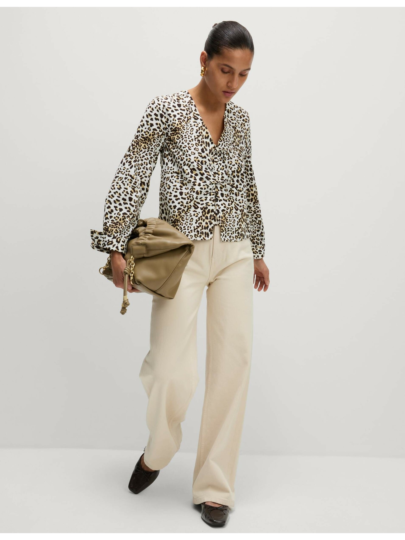 Bézs V-nyakú blúz Moodo