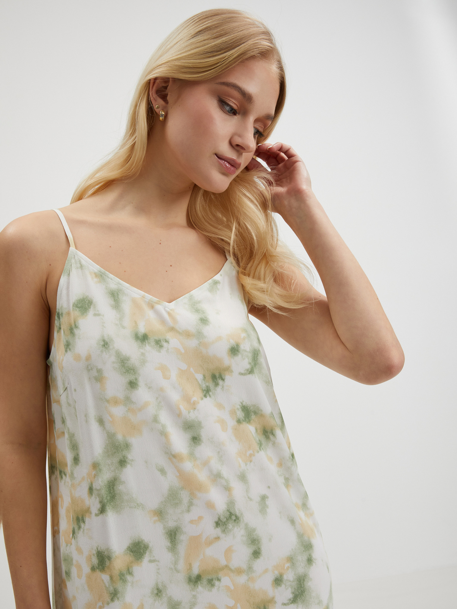 Ragyogó csillogó ruha átlapolt dekoltázzsal és pánttal