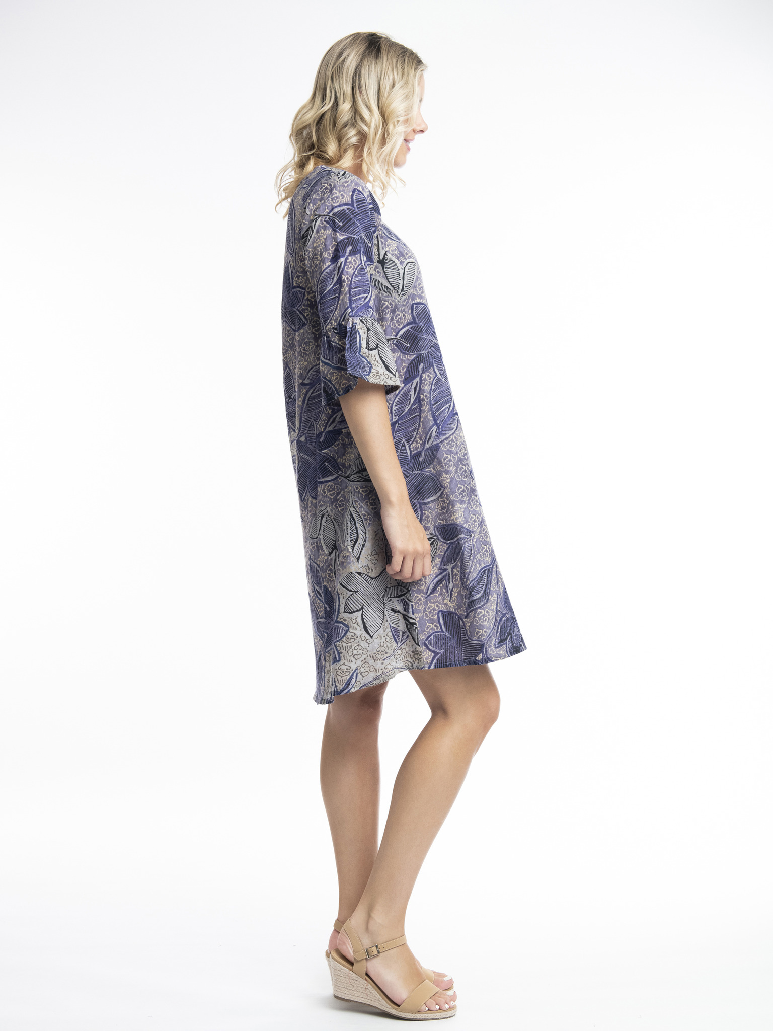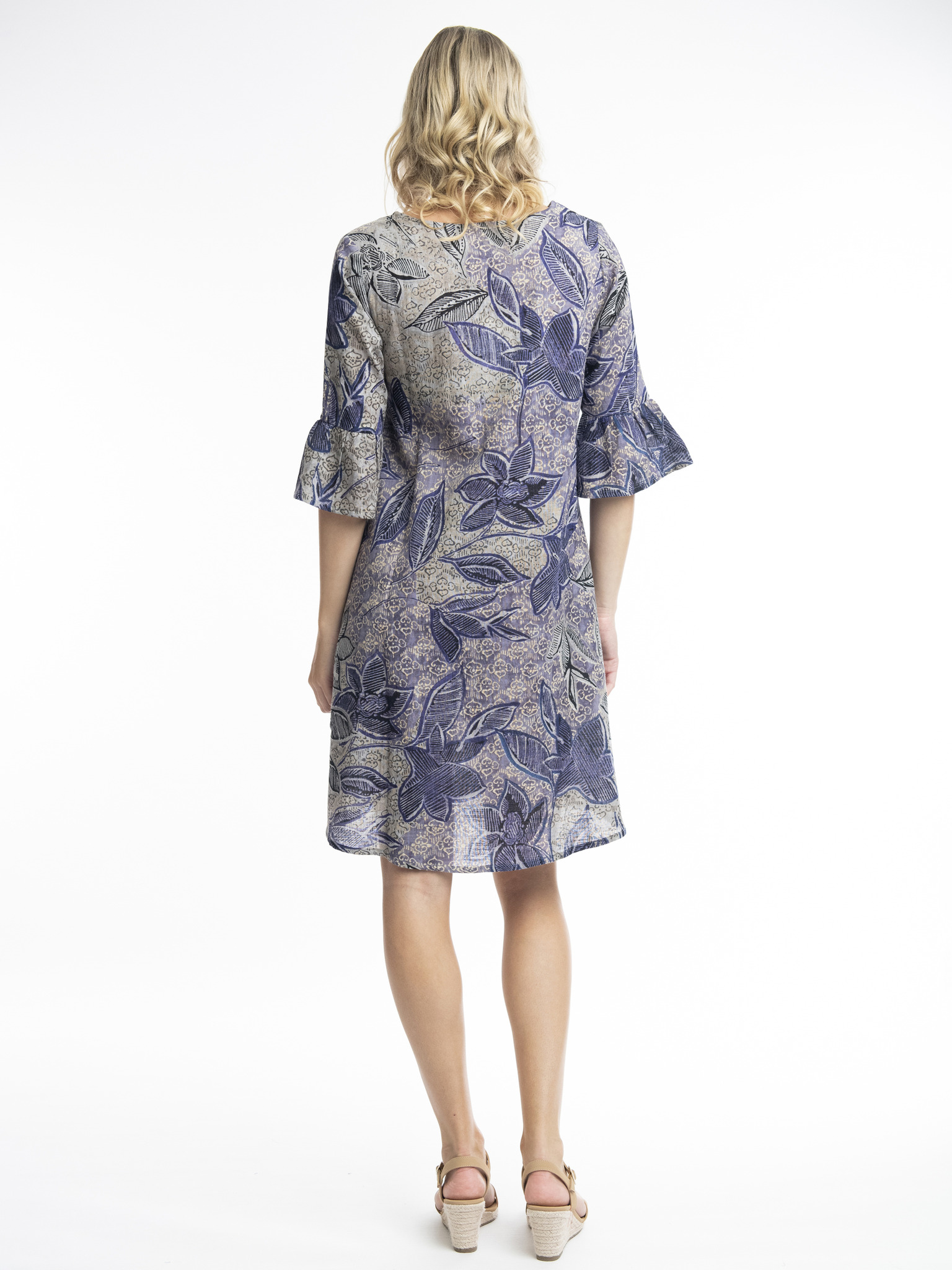 Lila virágos ruha fodros ujjakkal Moodo