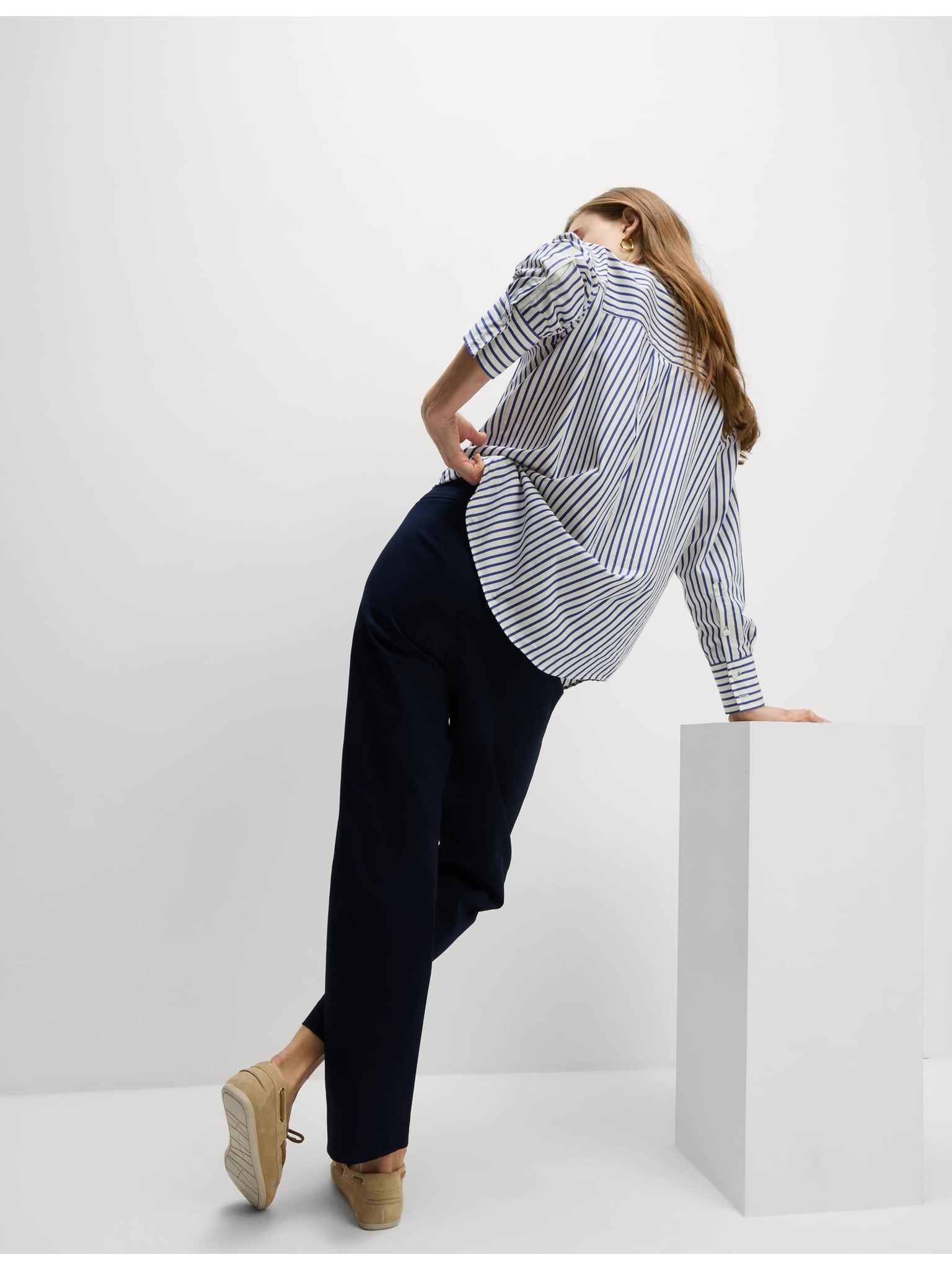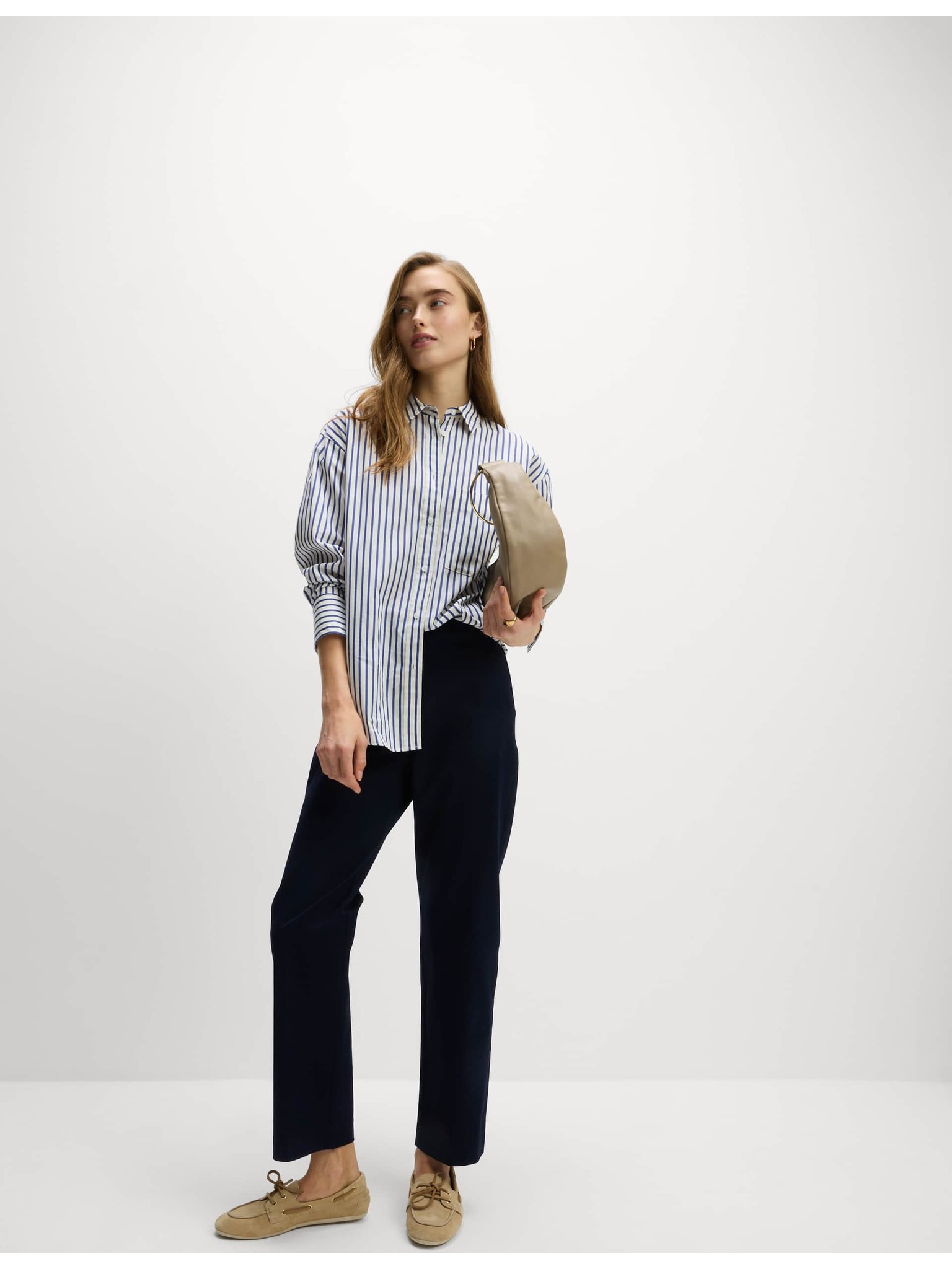 Szűk harang nadrág csíkozással Marks & Spencer sötétkék