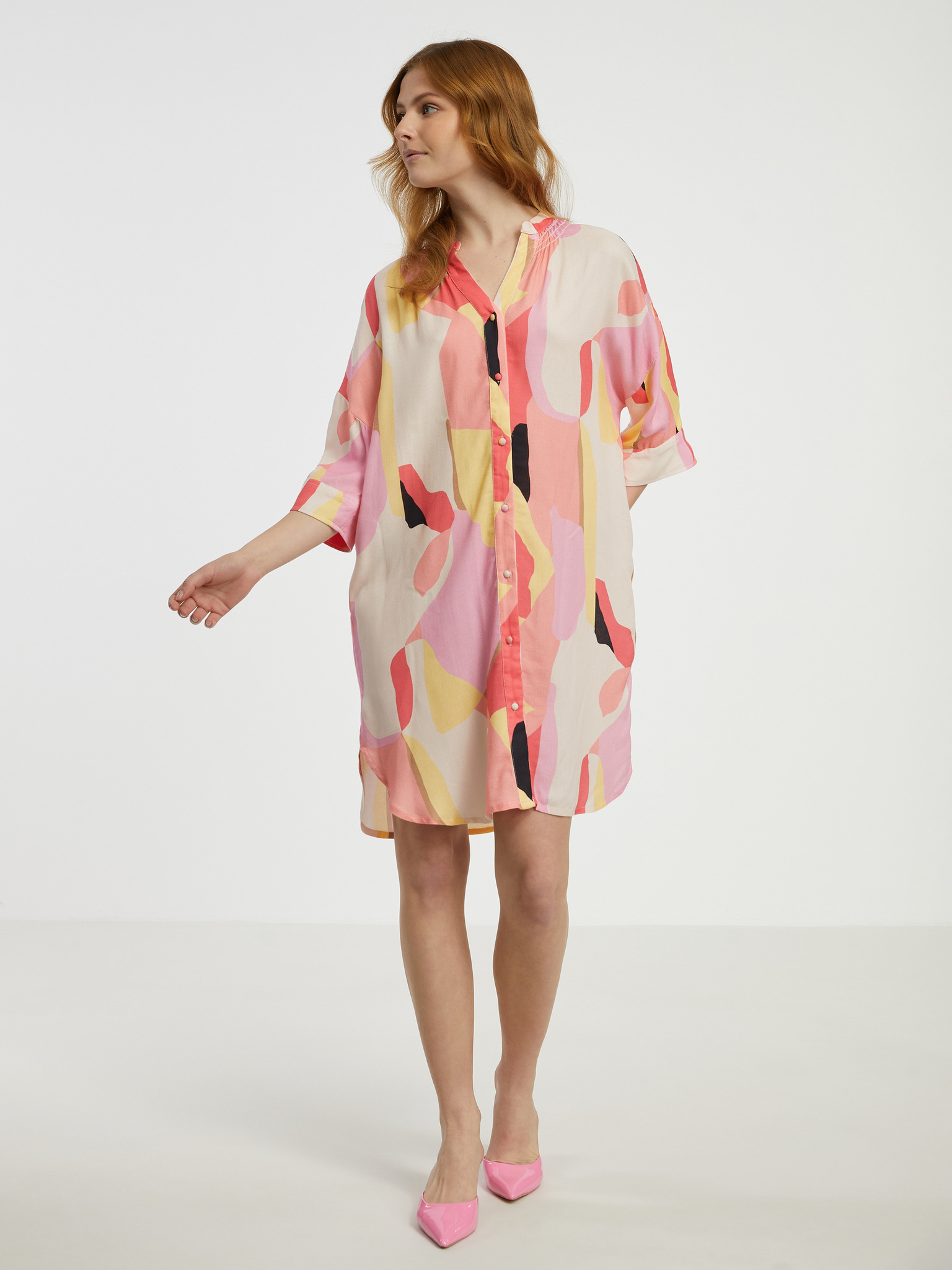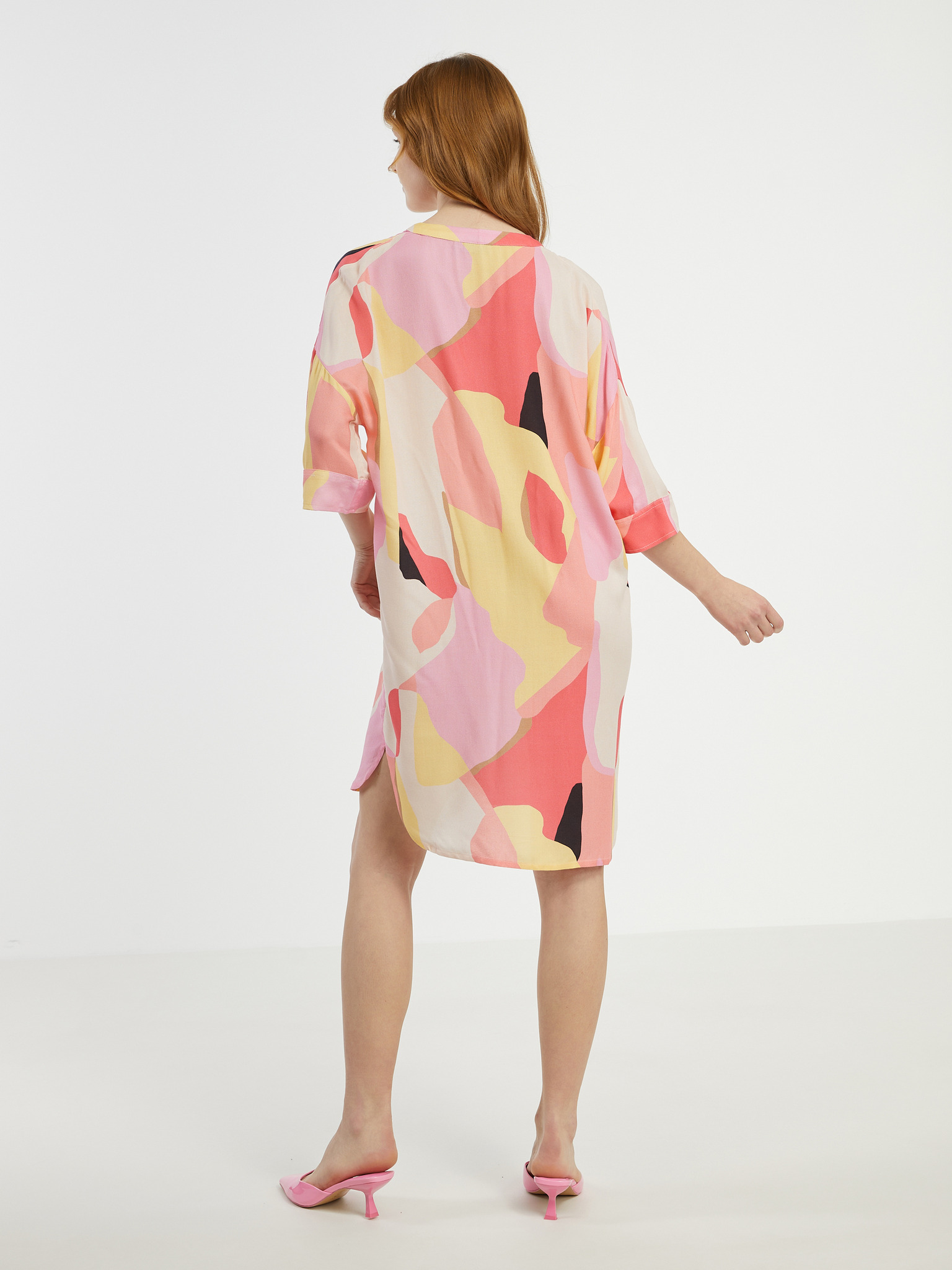 Krémszínű és rózsaszínű női mintás pólóruha Fransa