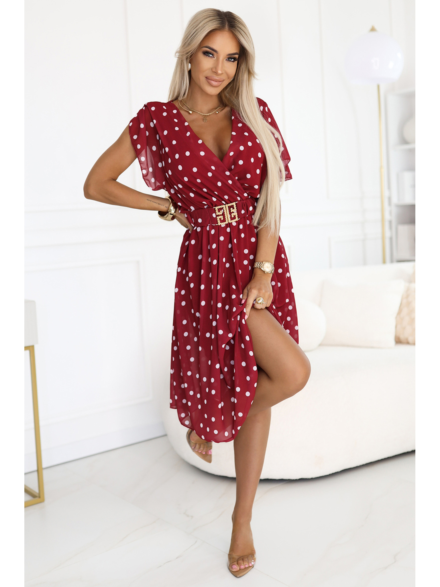 Exkluzív ruha kiszélesedő alsó résszel és arany cipzárral