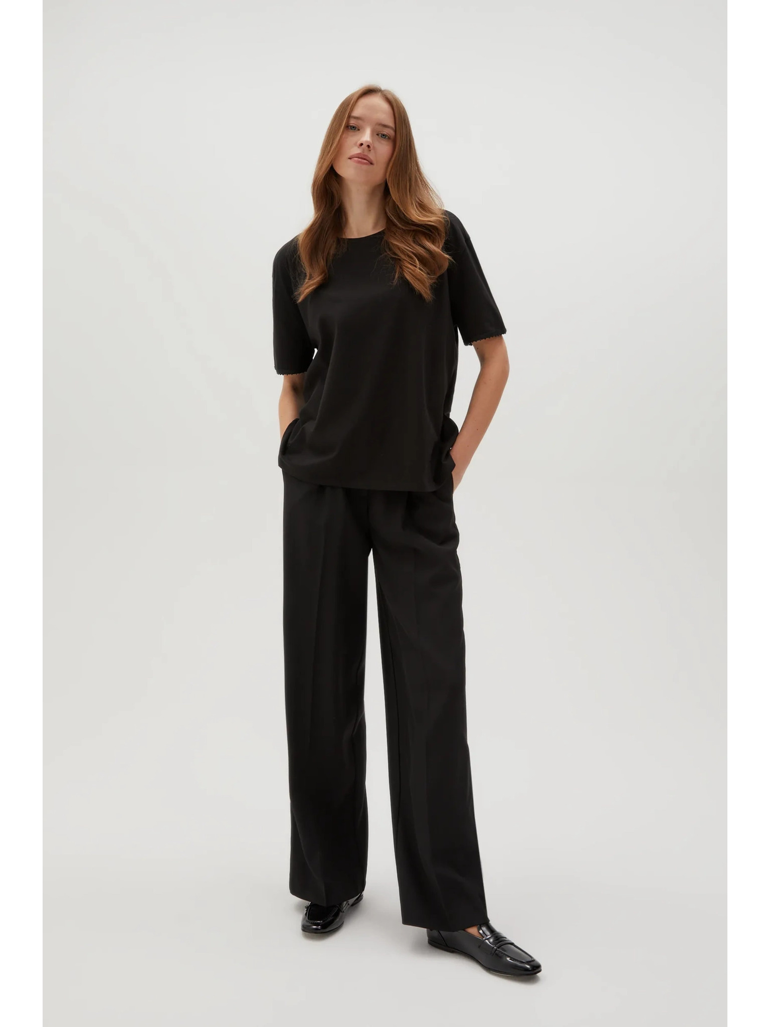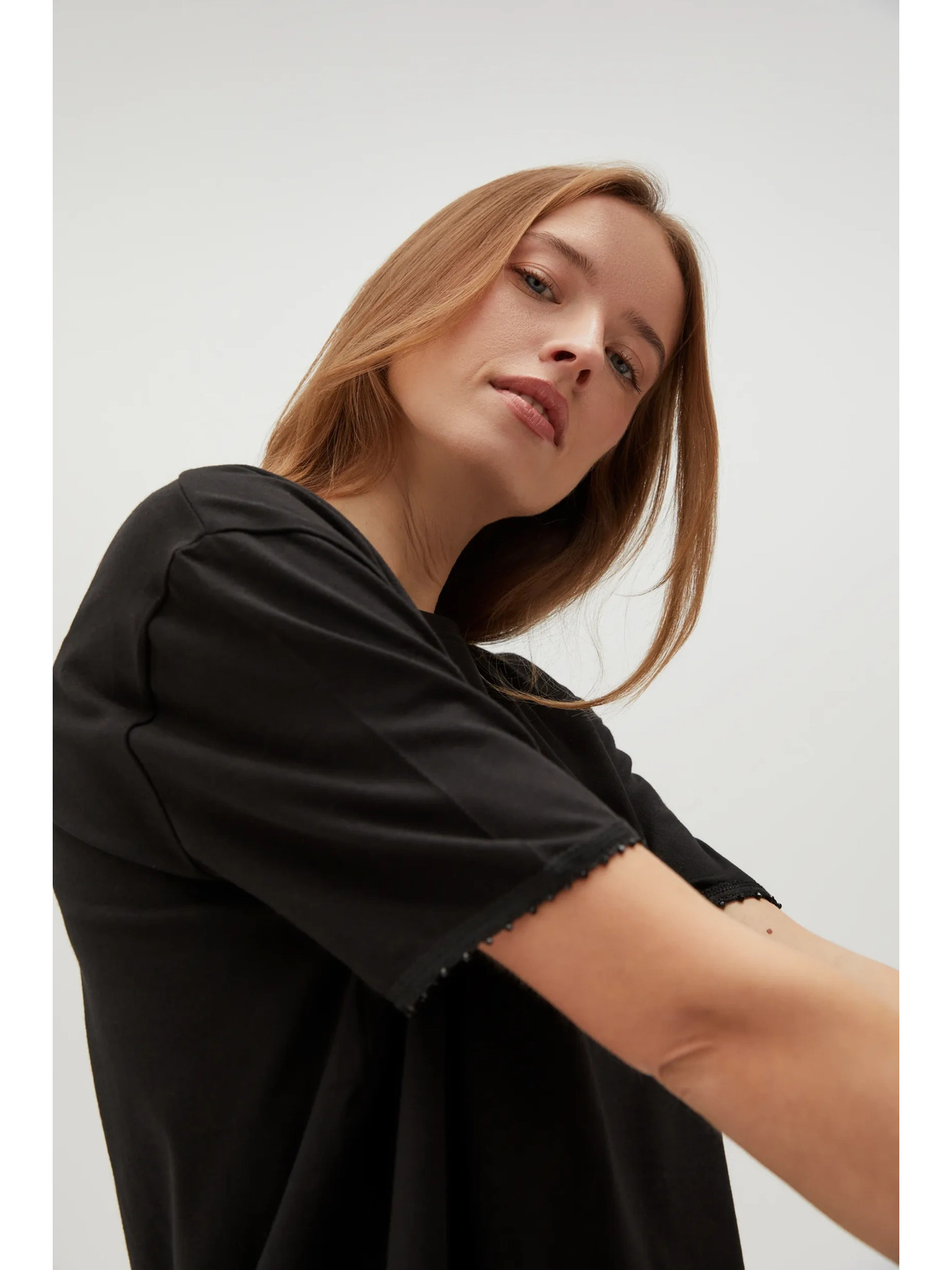 Moodo női póló gyöngyökkel – fekete