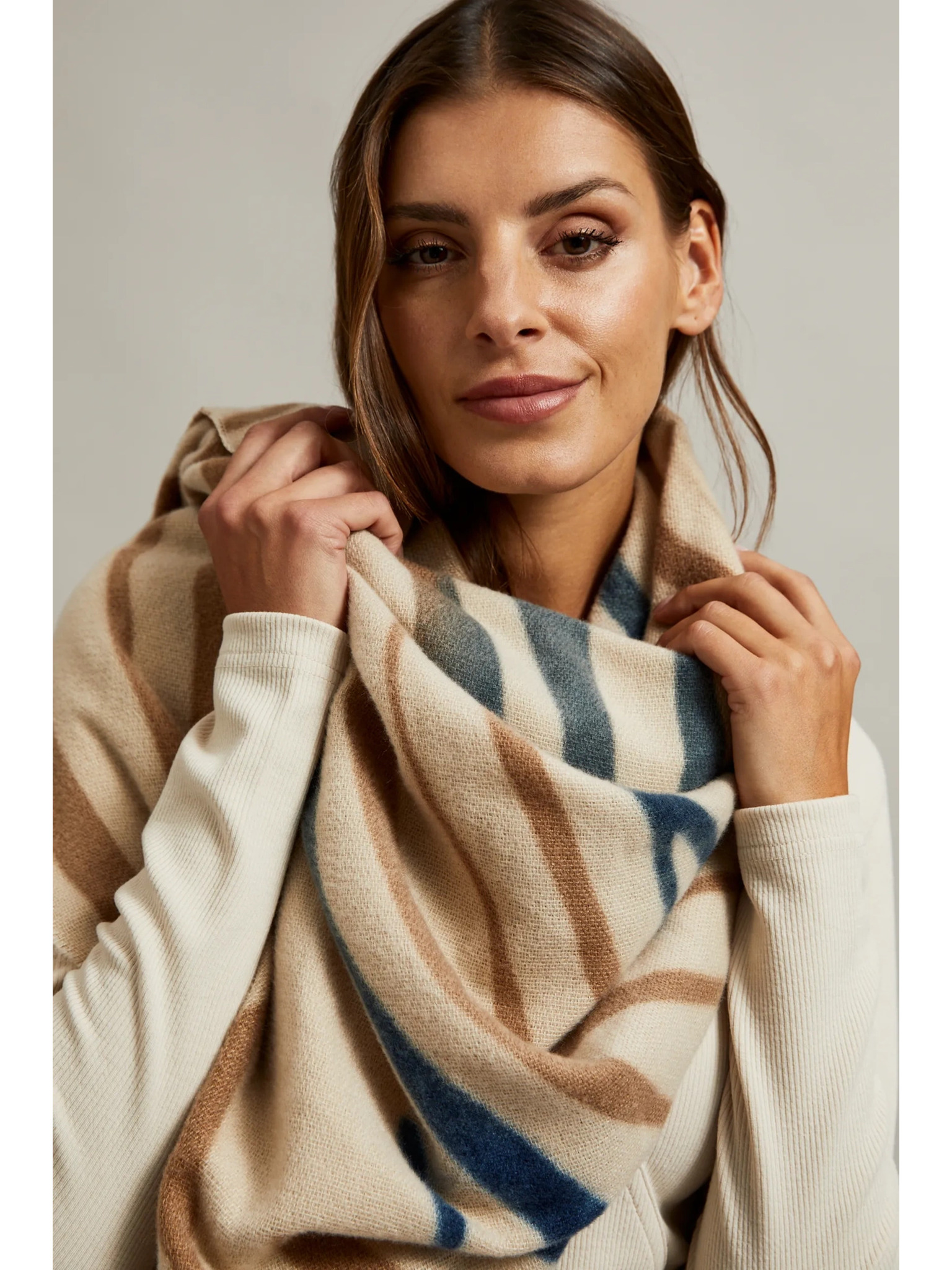 Moodo szürke és bézs női kockás sál
