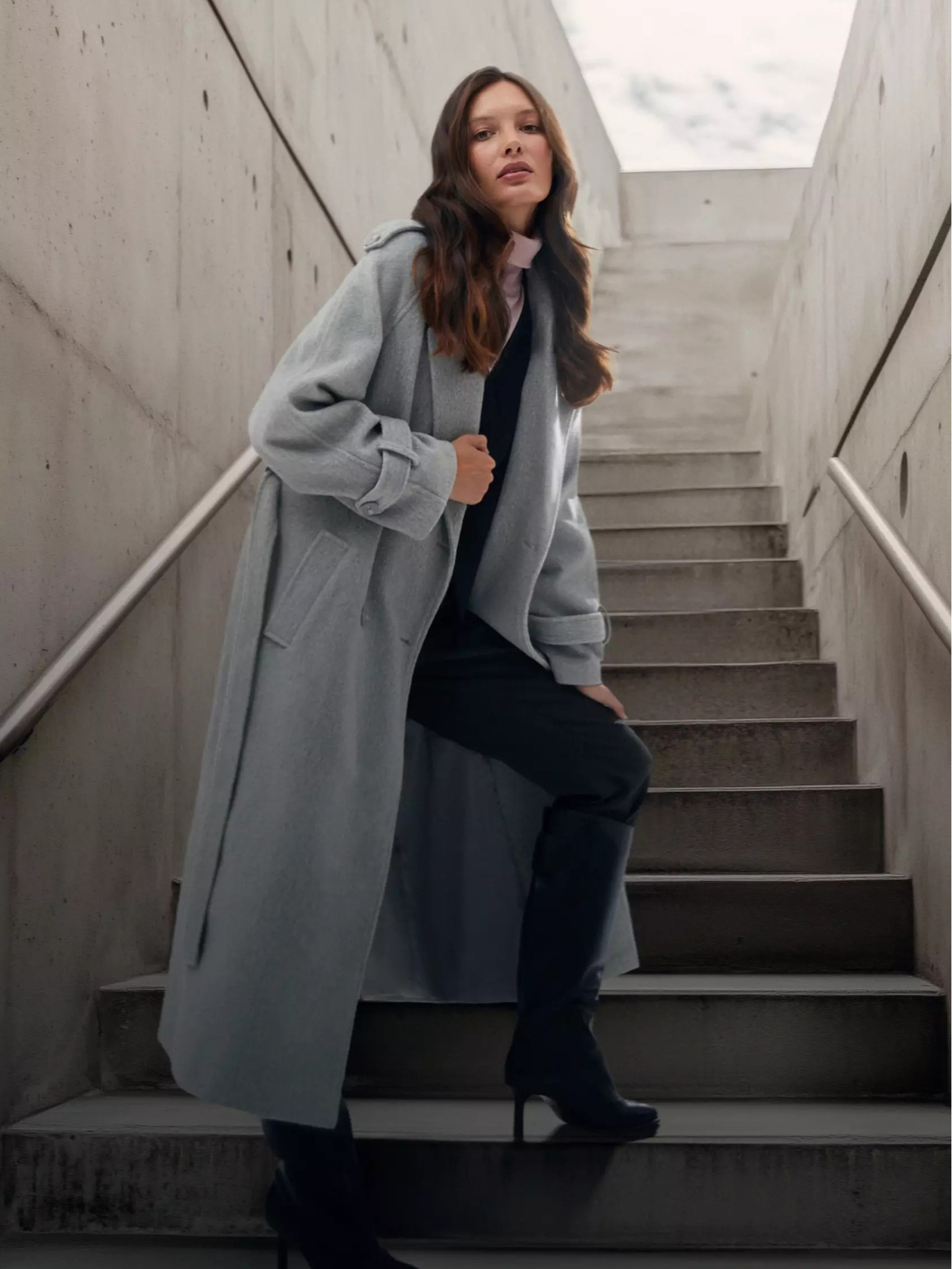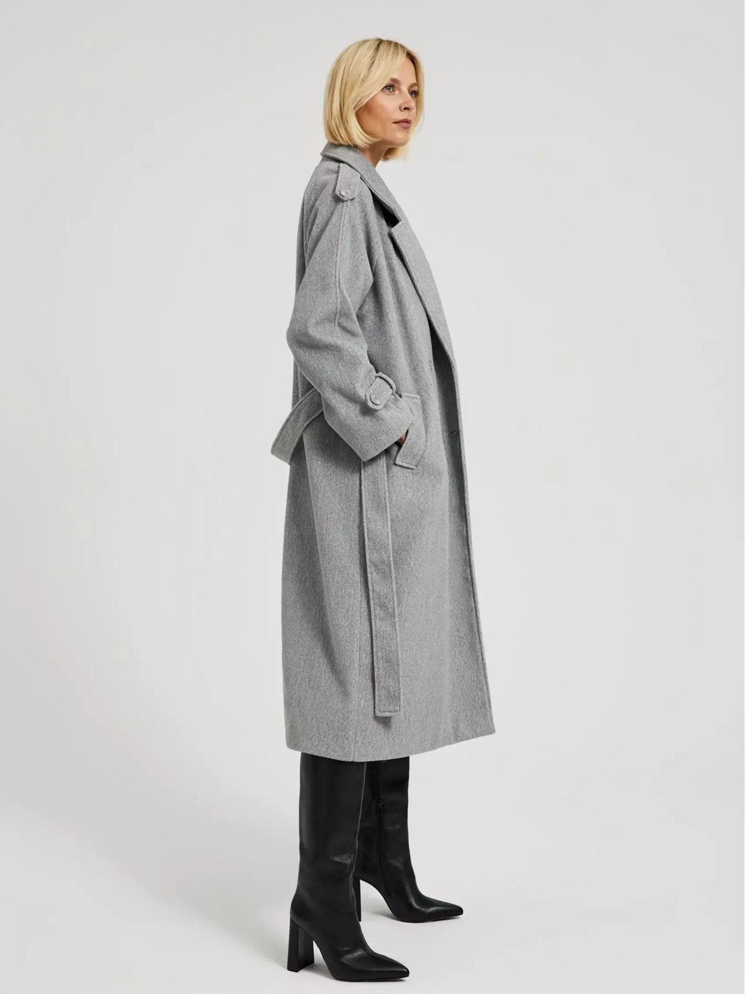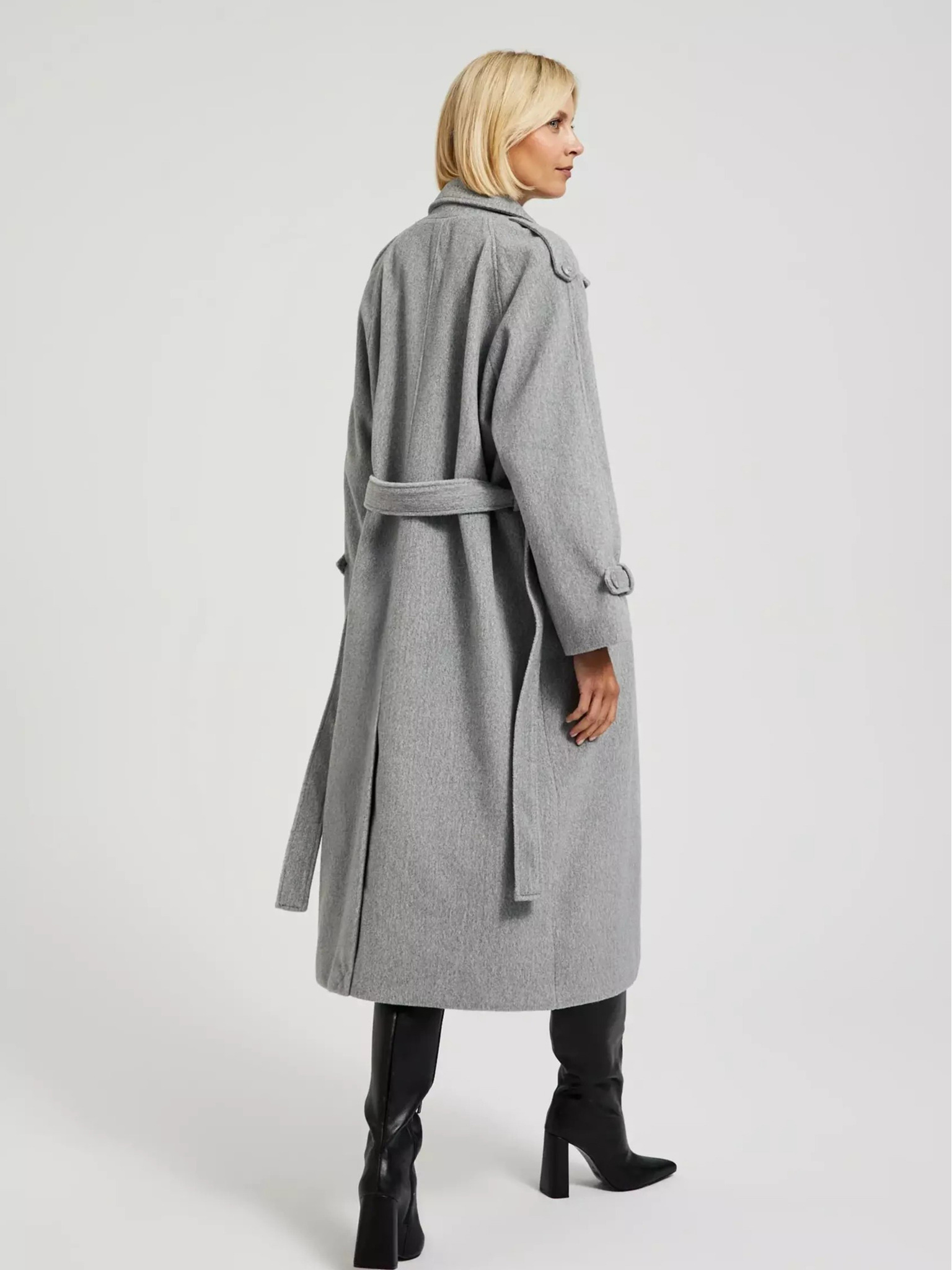 ORSAY sötétszürke steppelt női télikabát övvel