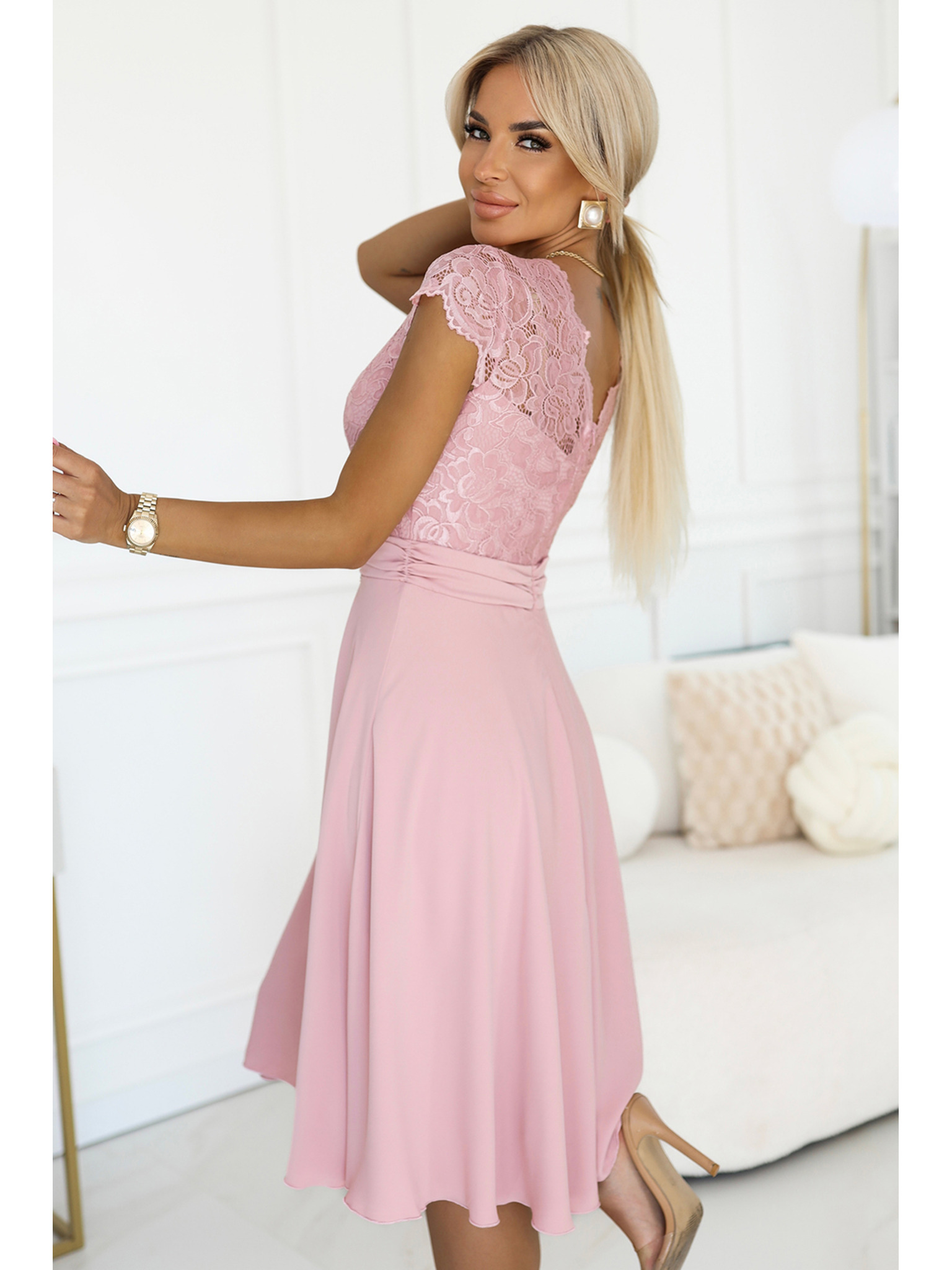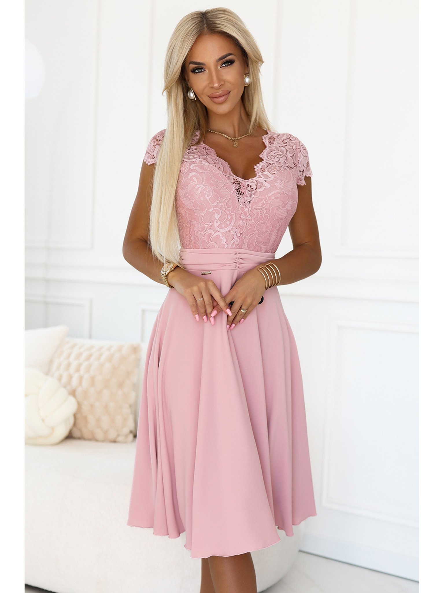 Flared nyakkivágású ruha - púderrózsaszín Numoco SCARLETT