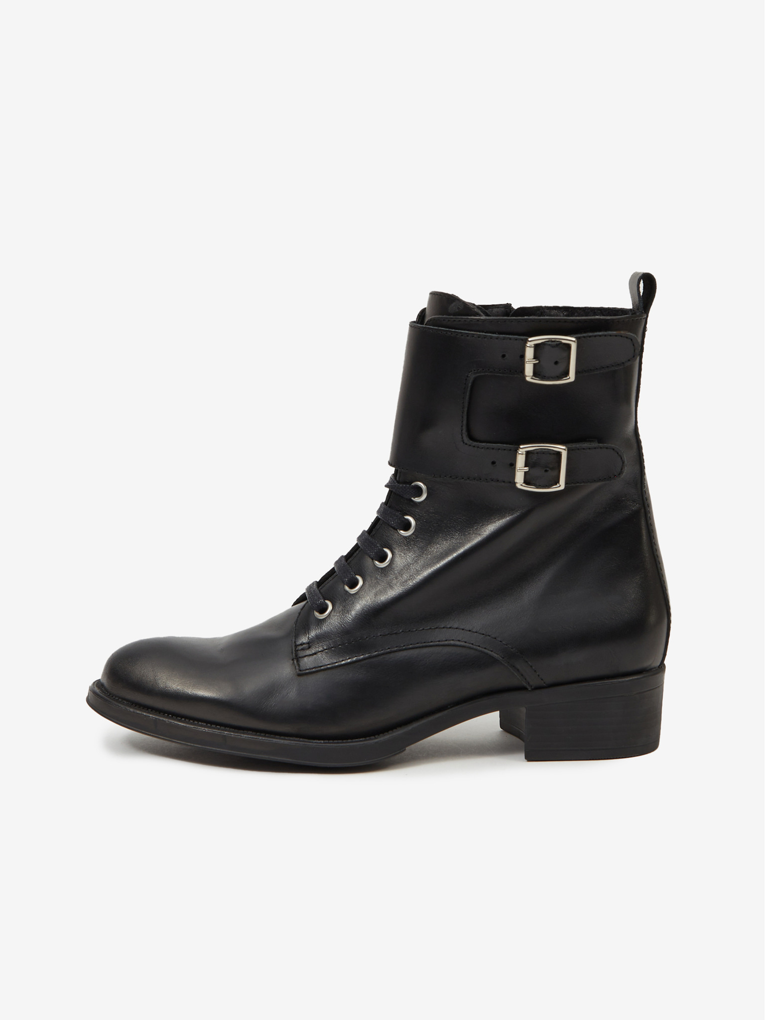 Fekete női bőr bokacsizma sarokkal OJJU