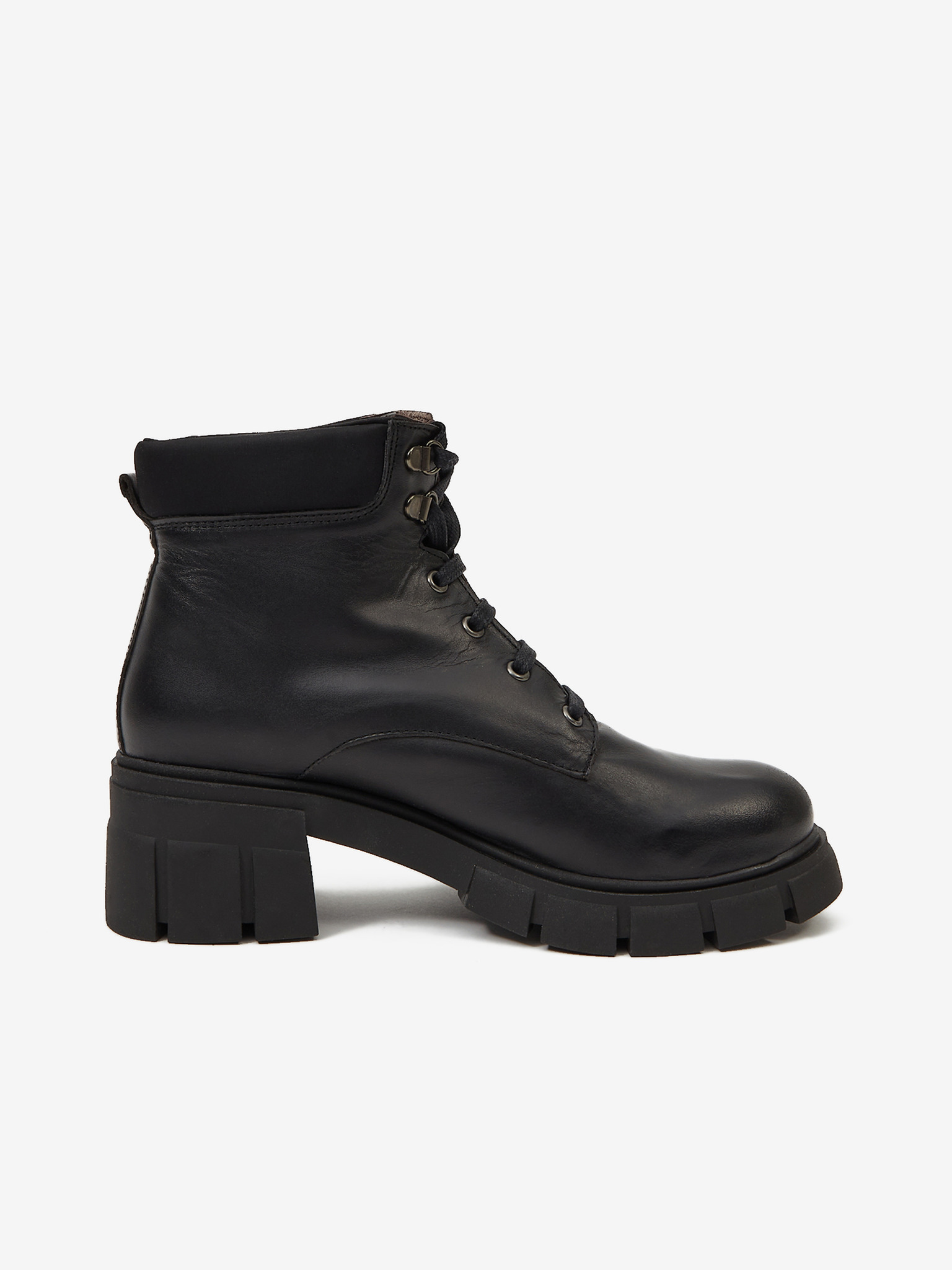 Fekete női bőr bokacsizma sarokkal OJJU