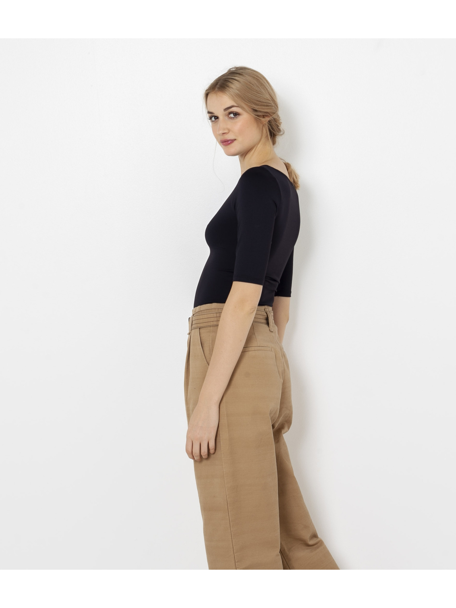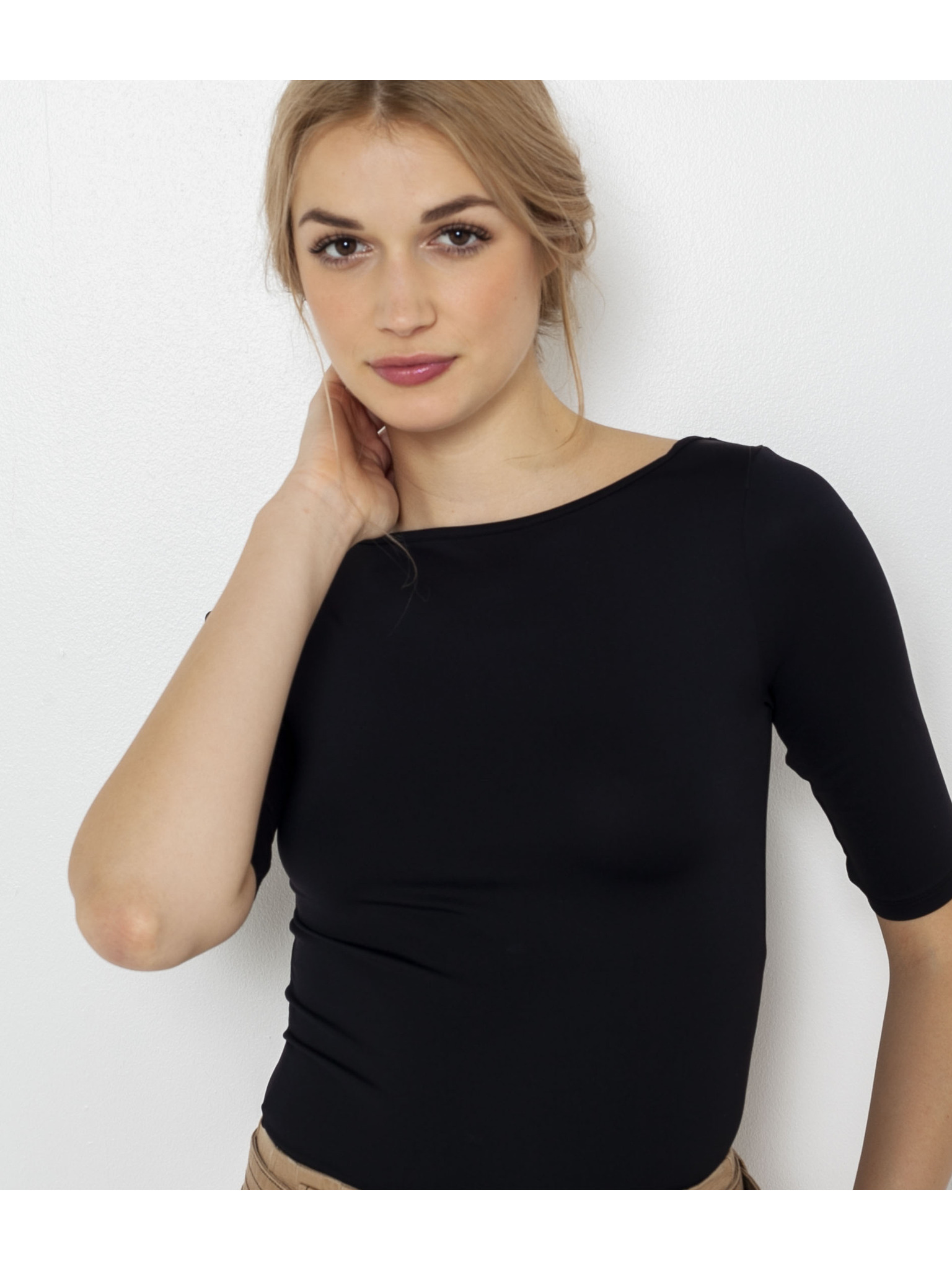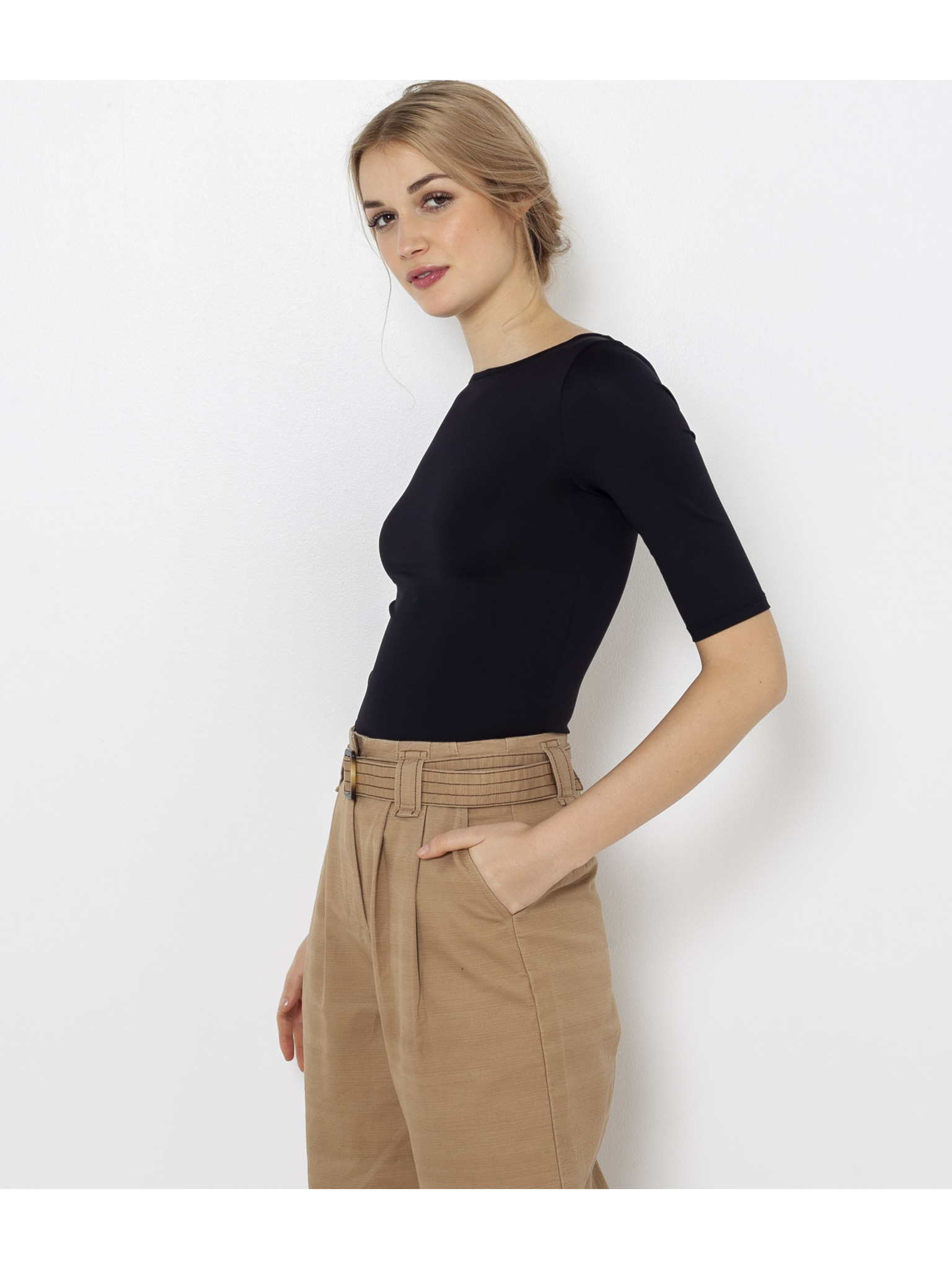 Fekete CAMAIEU póló átlátszó ujjakkal