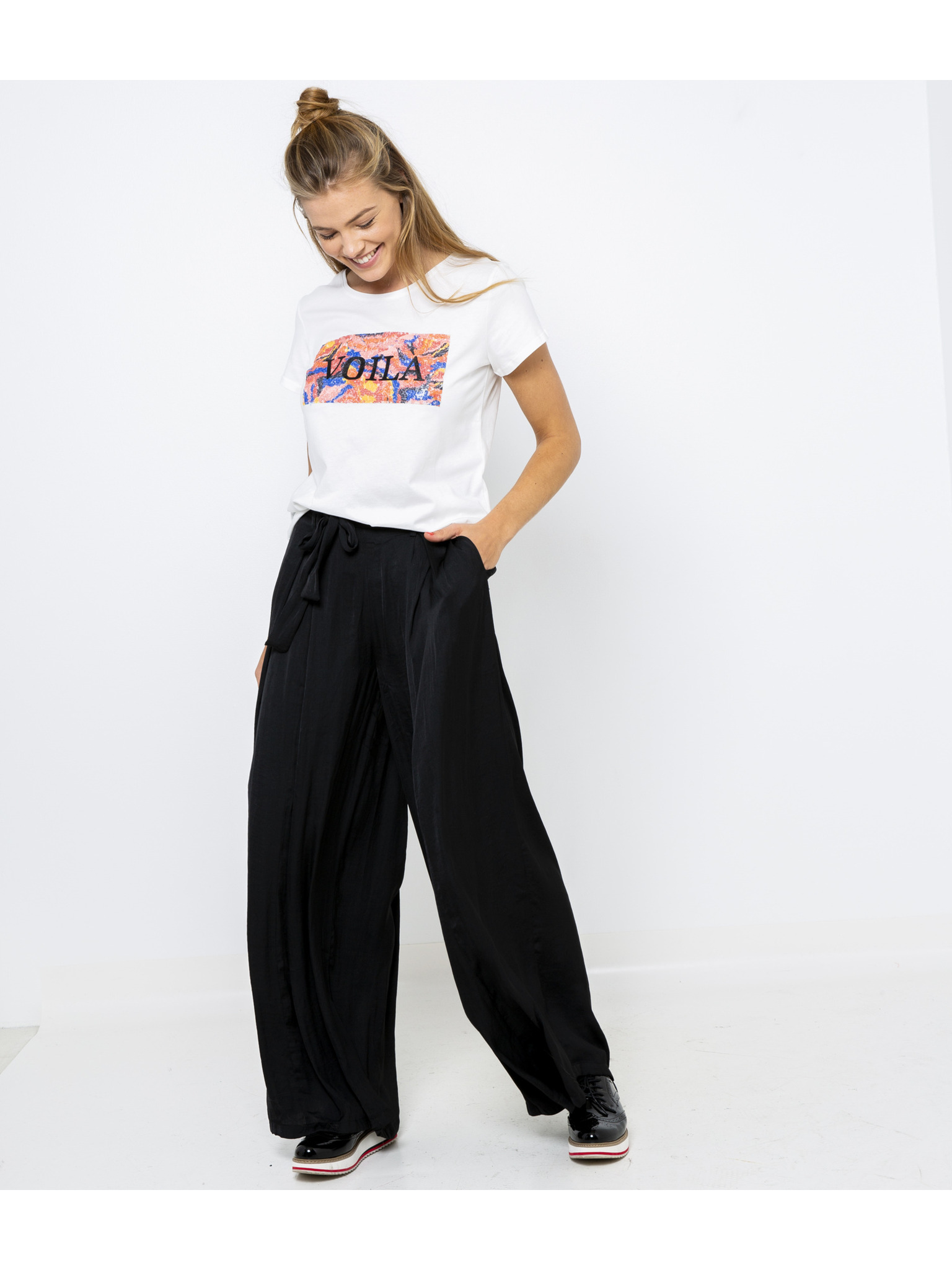 Fehér CAMAIEU póló felirattal és csomóval