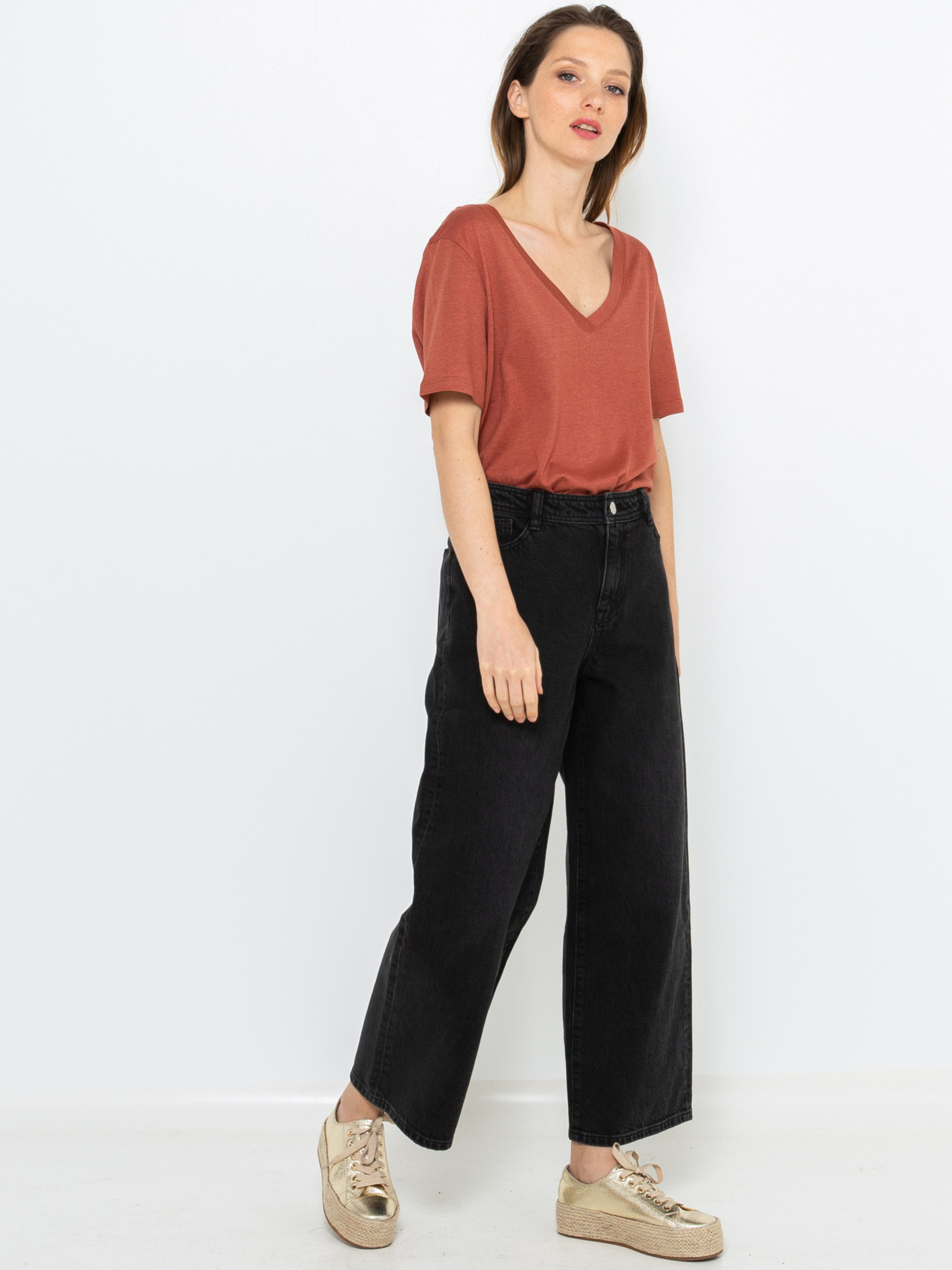 Fekete CAMAIEU póló átlátszó ujjakkal
