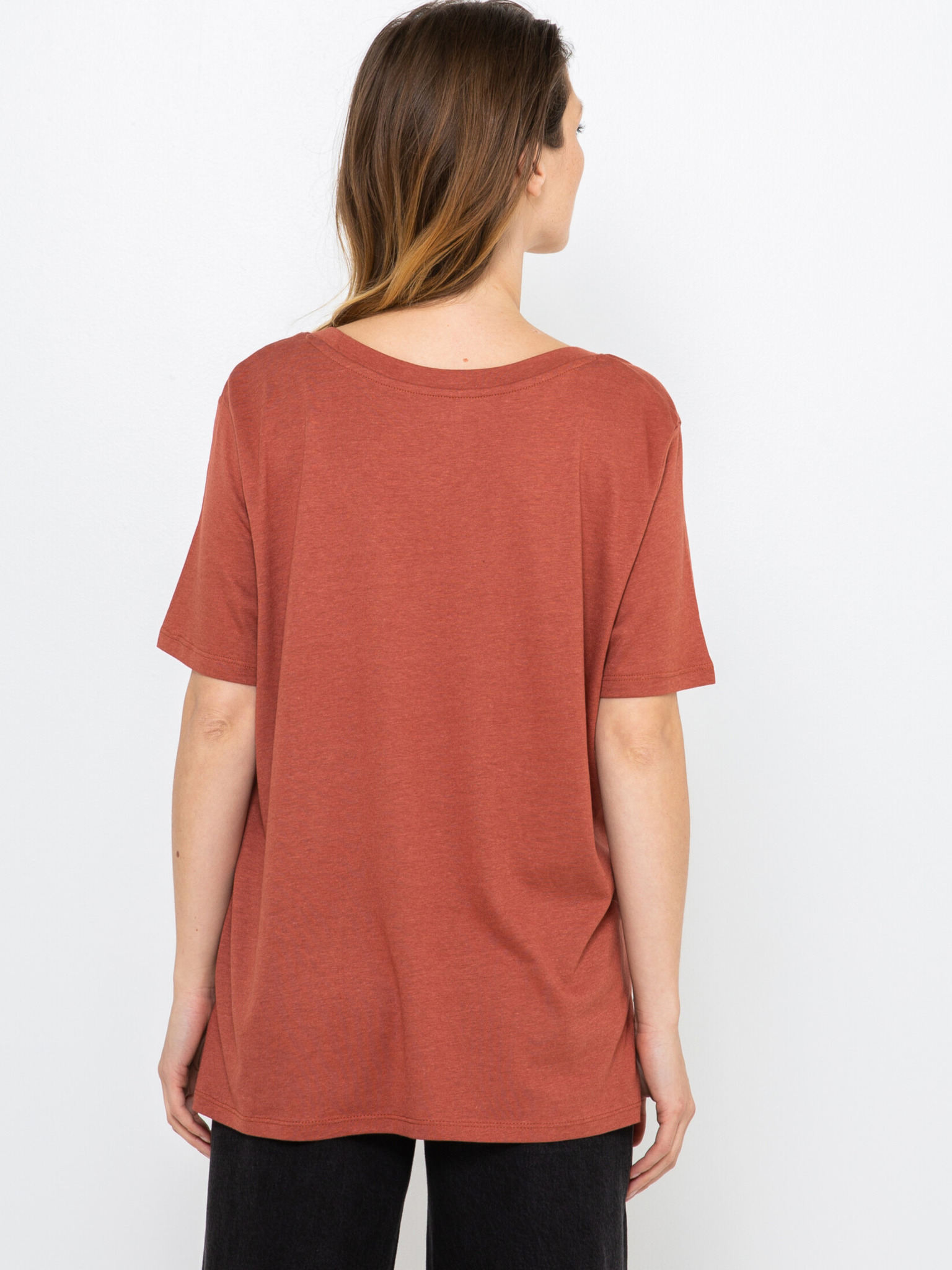 Moodo női póló zsebbel – sötétbarna