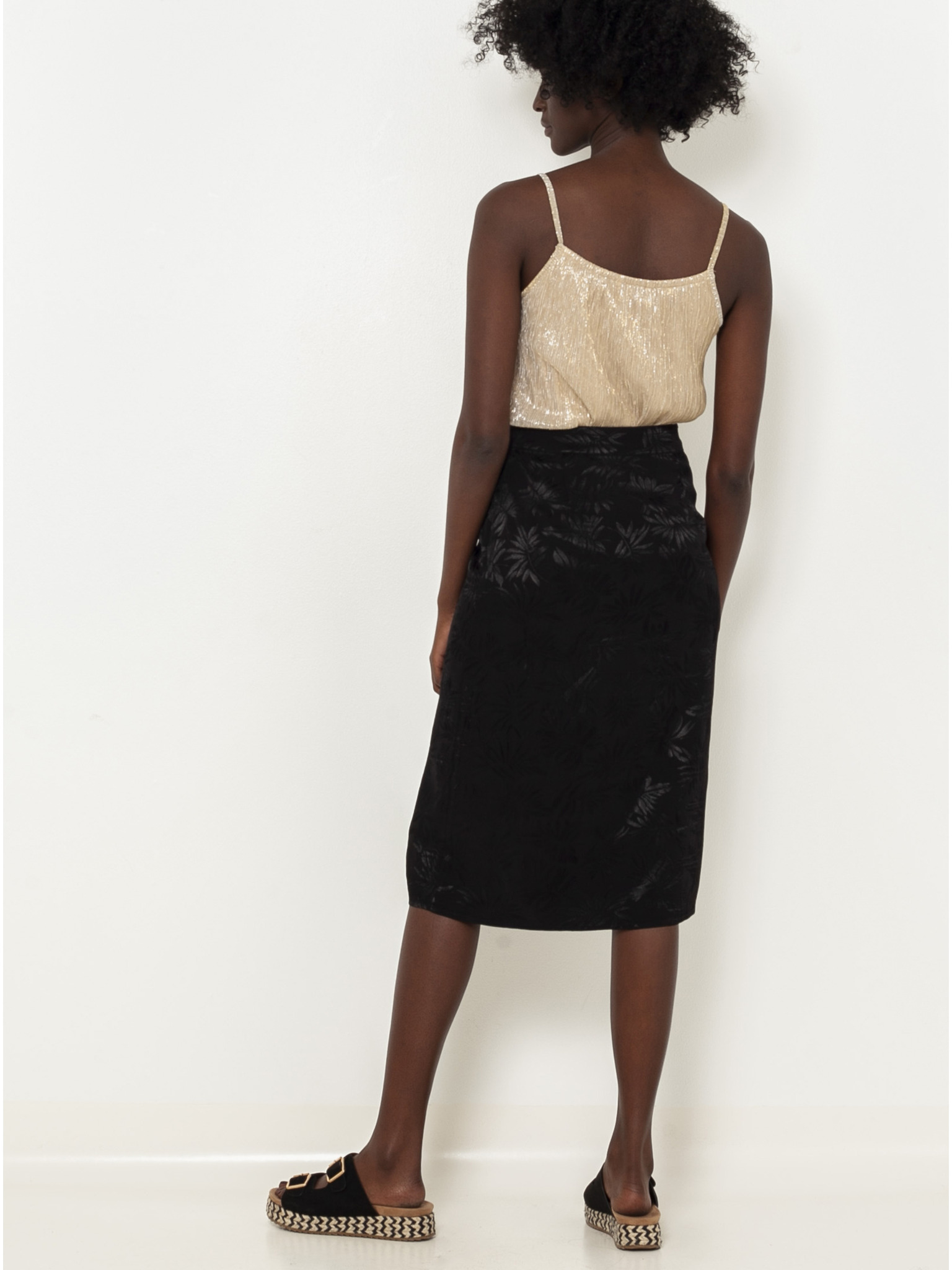 Fekete midi szoknya virágmintával ORSAY