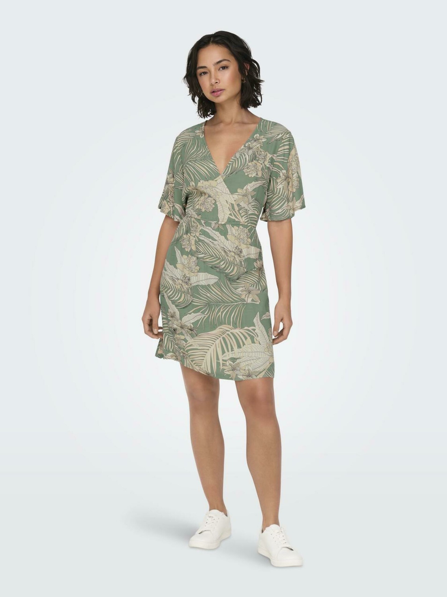 374-8 POLINA pliszírozott dekoltázsos fodros ruha - zöld