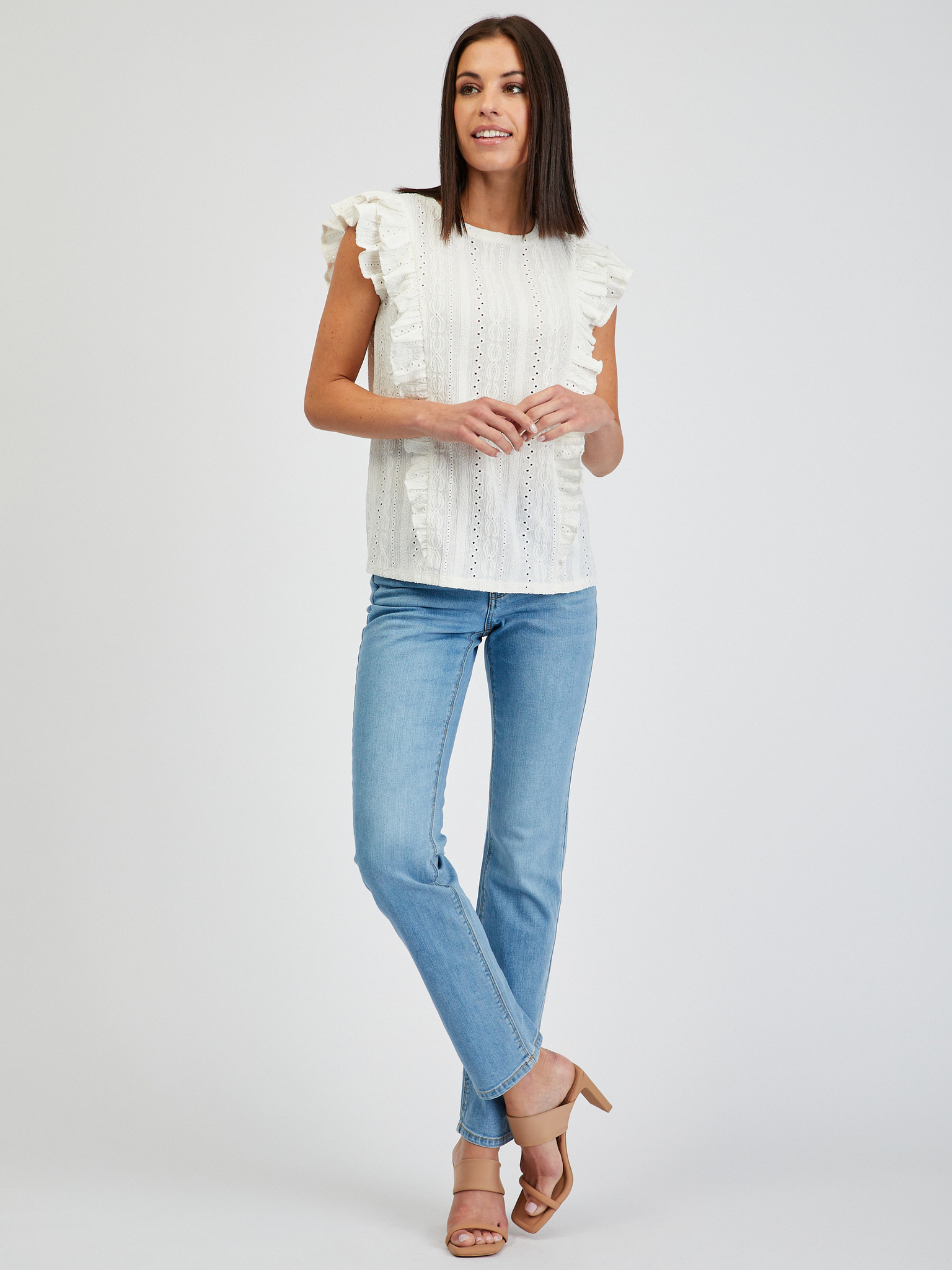 ORSAY fehér fodros női póló