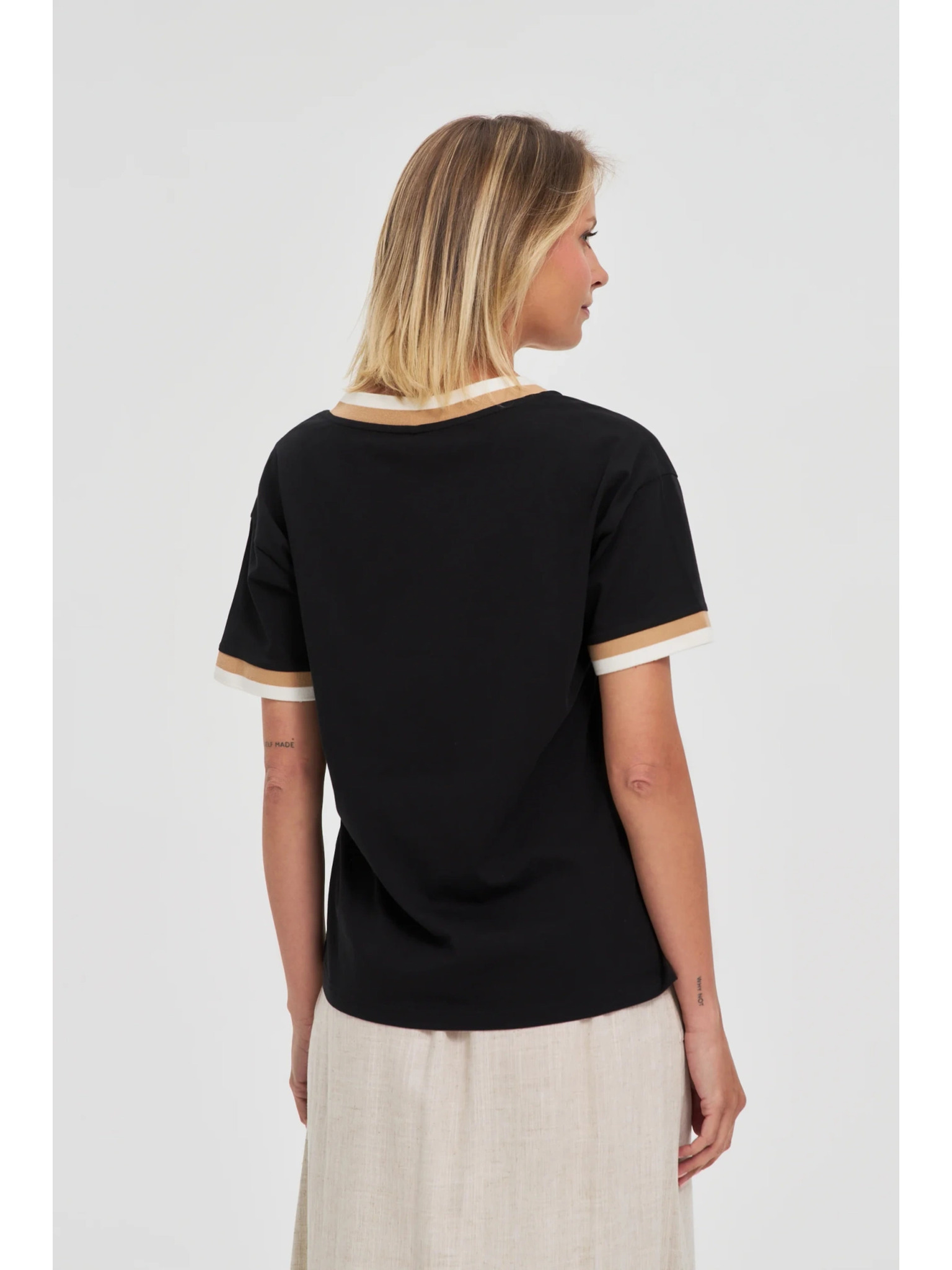 Moodo női póló gyöngyökkel – fekete