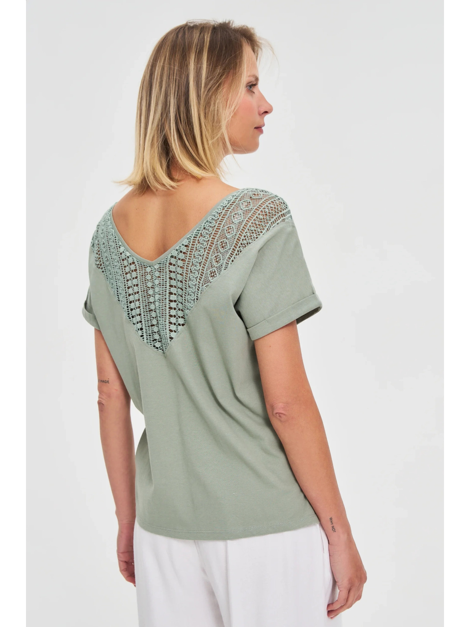 Női póló díszített nyakrésszel – fehér