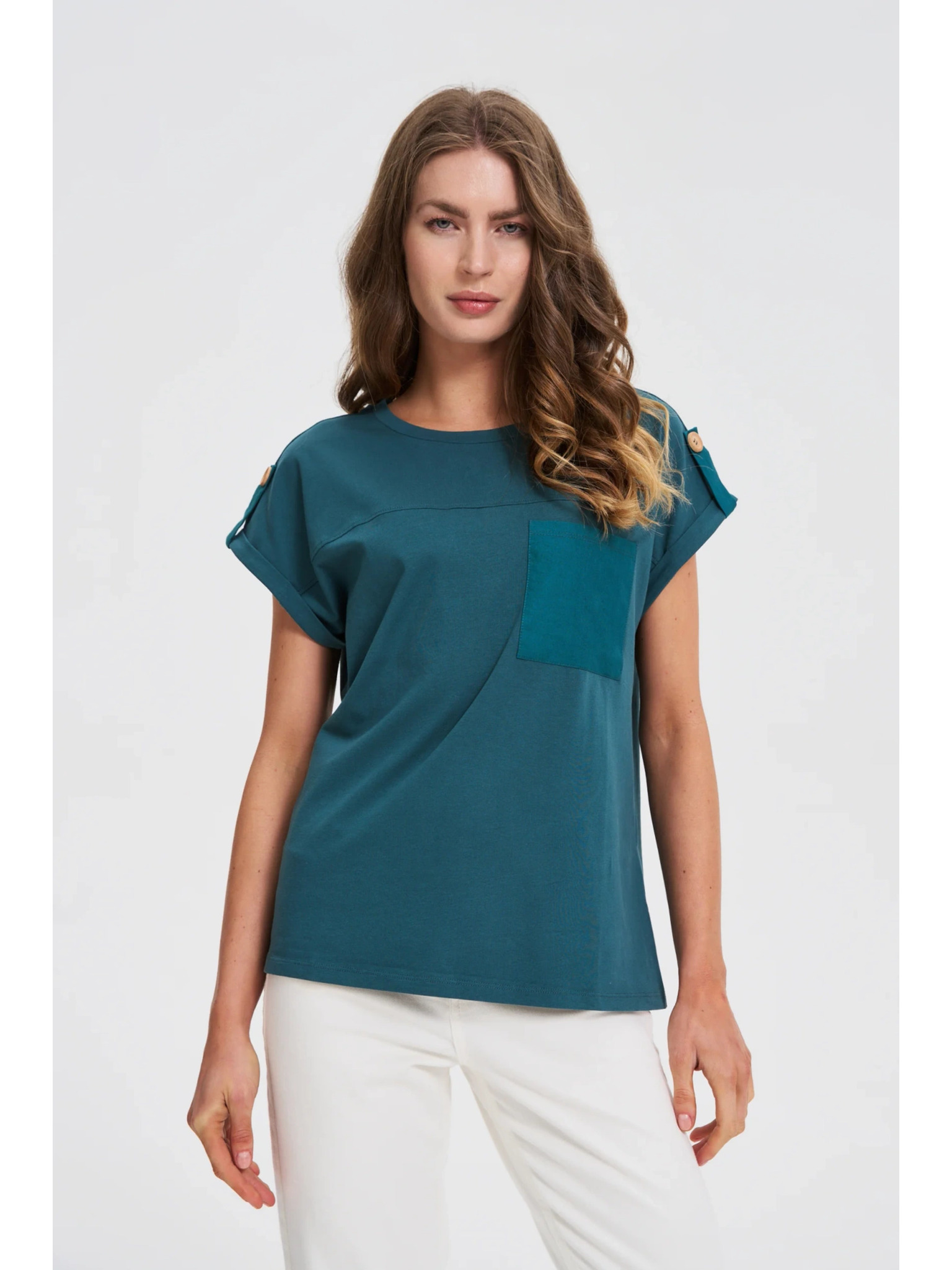 Moodo női felső zsebbel - olívazöld