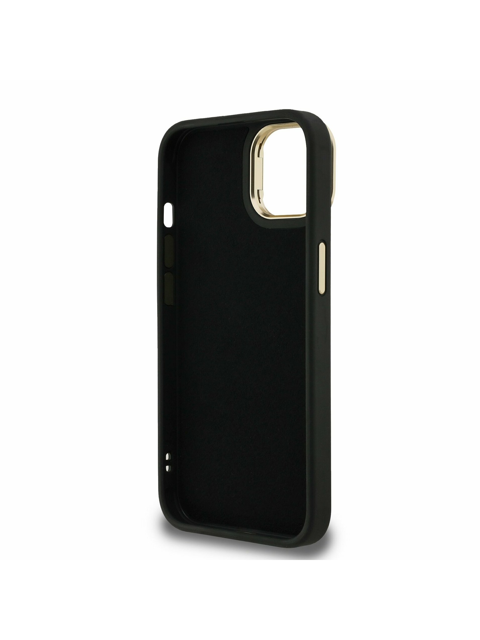 Guess PU Érdes 4G Logo Álló Kamera Keret Hátlap iPhone 13-hoz Fekete