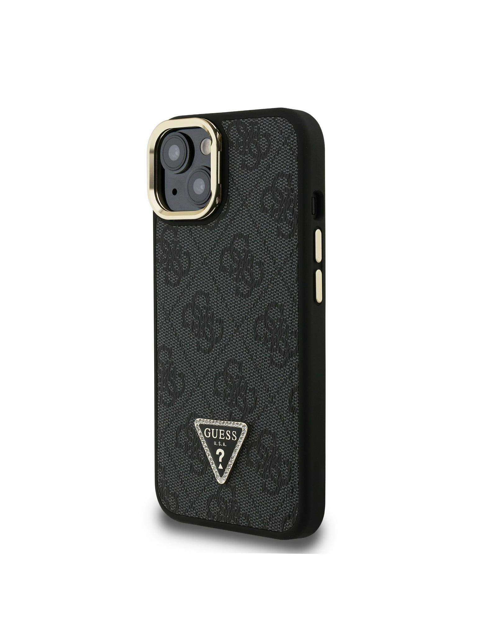Guess PU Érdes 4G Logo Álló Kamera Keret Hátlap iPhone 13-hoz Fekete