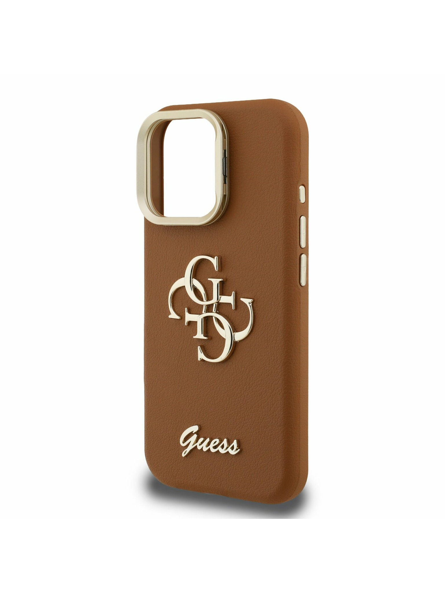 Guess PU 4G Fém Logo Szíj Hátlap iPhone 16-hoz Barna