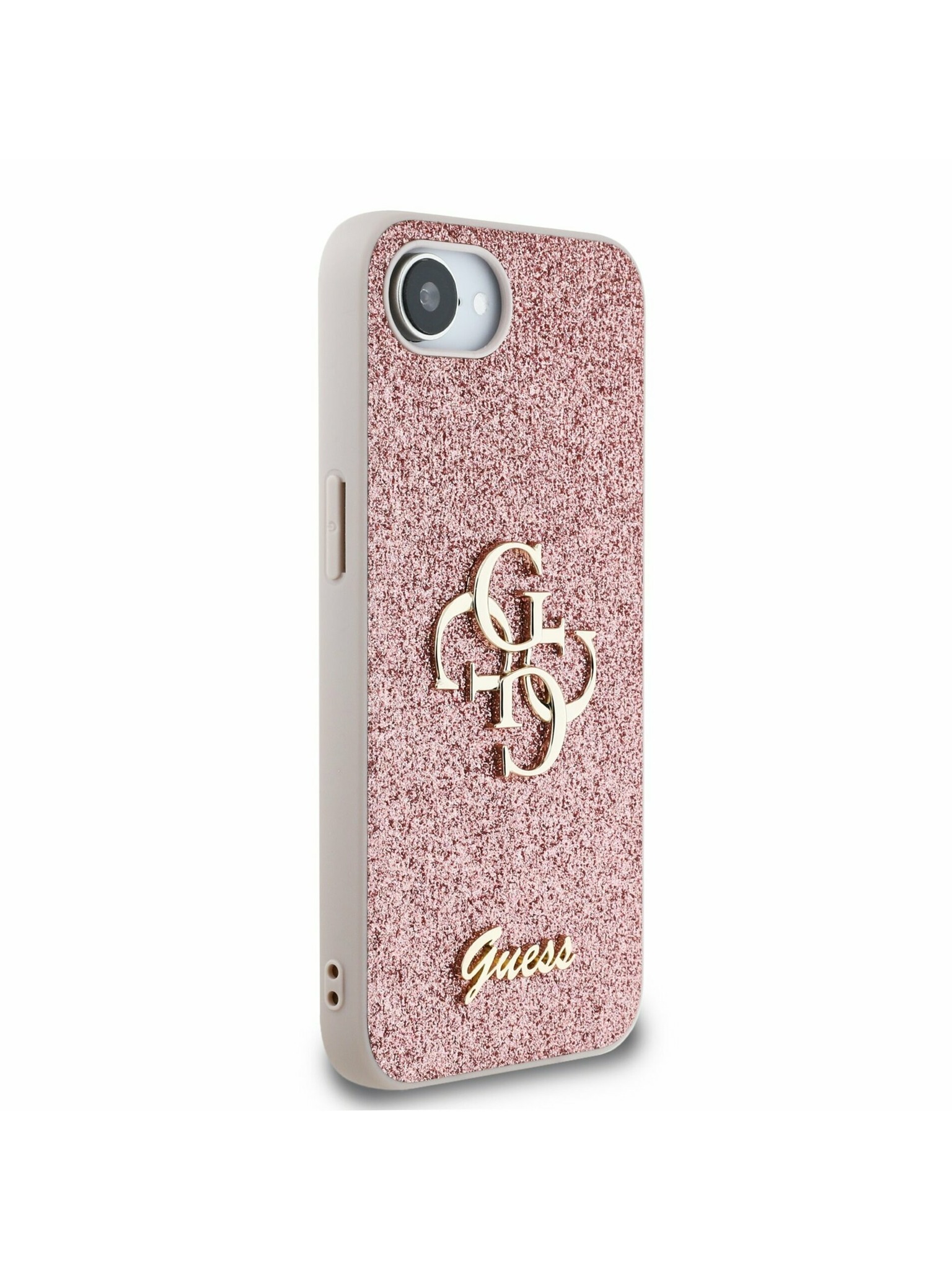 Guess PU 4G Fém Logo Stand Kamera Keret Hátlap iPhone 15-höz Rózsaszín