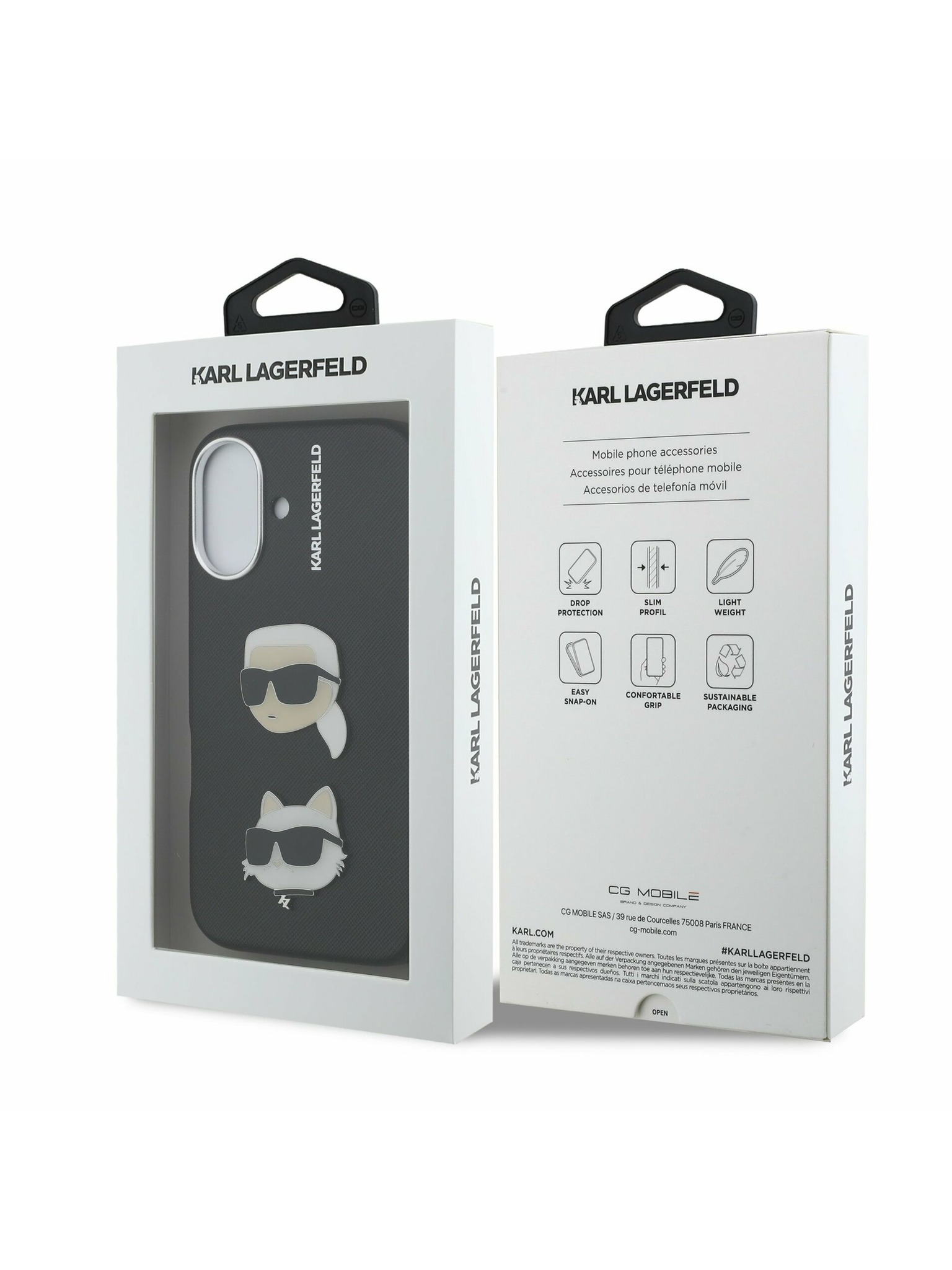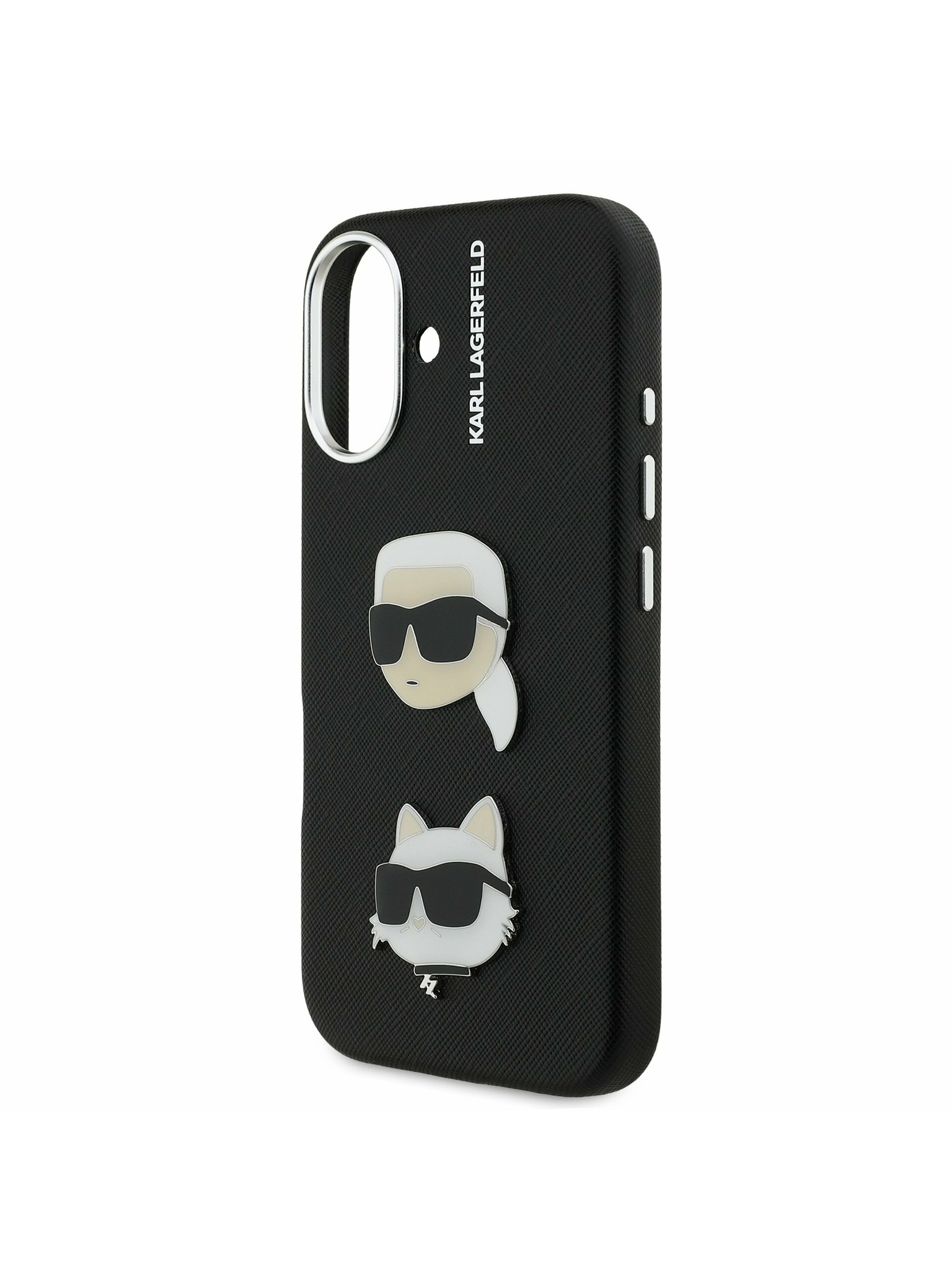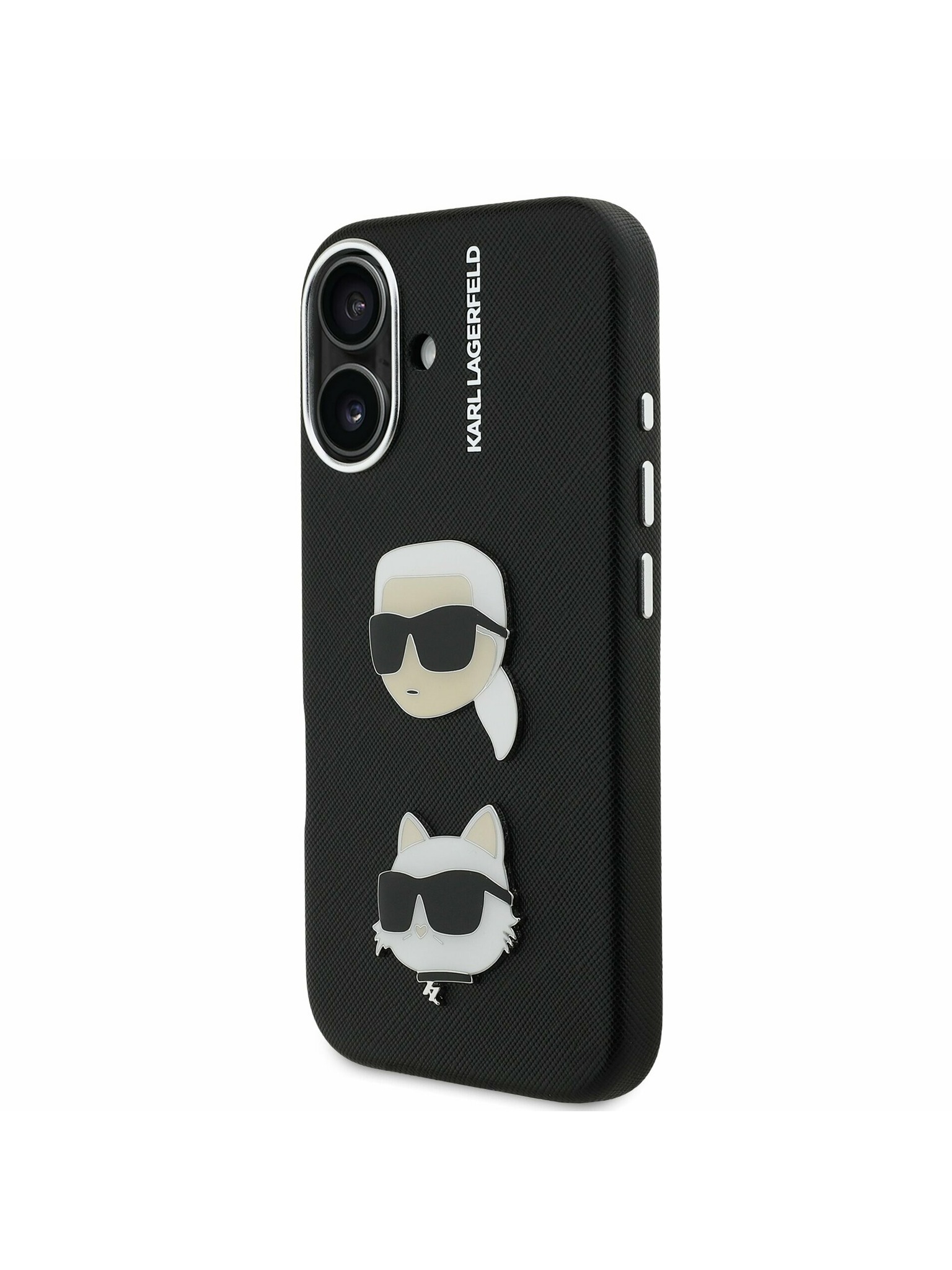 Karl Lagerfeld Erezett PU K&CH Heads Hátlap iPhone 16-hoz Black