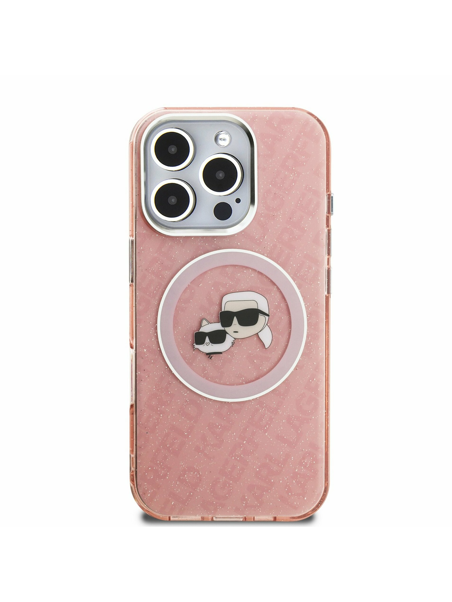 Karl Lagerfeld IML Glitter Karl and Choupette Sketch MagSafe Hátlap iPhone 16 Pro-hoz Transparent