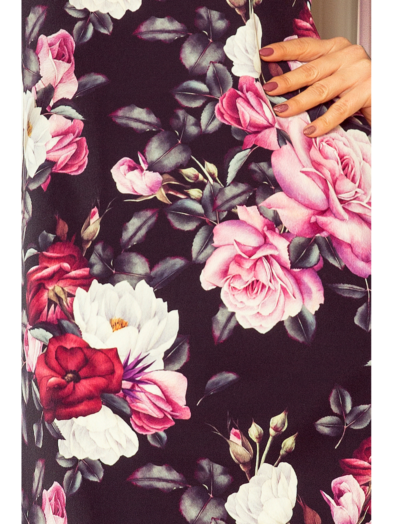 Mintás fekete dekoltált ruha Moodo
