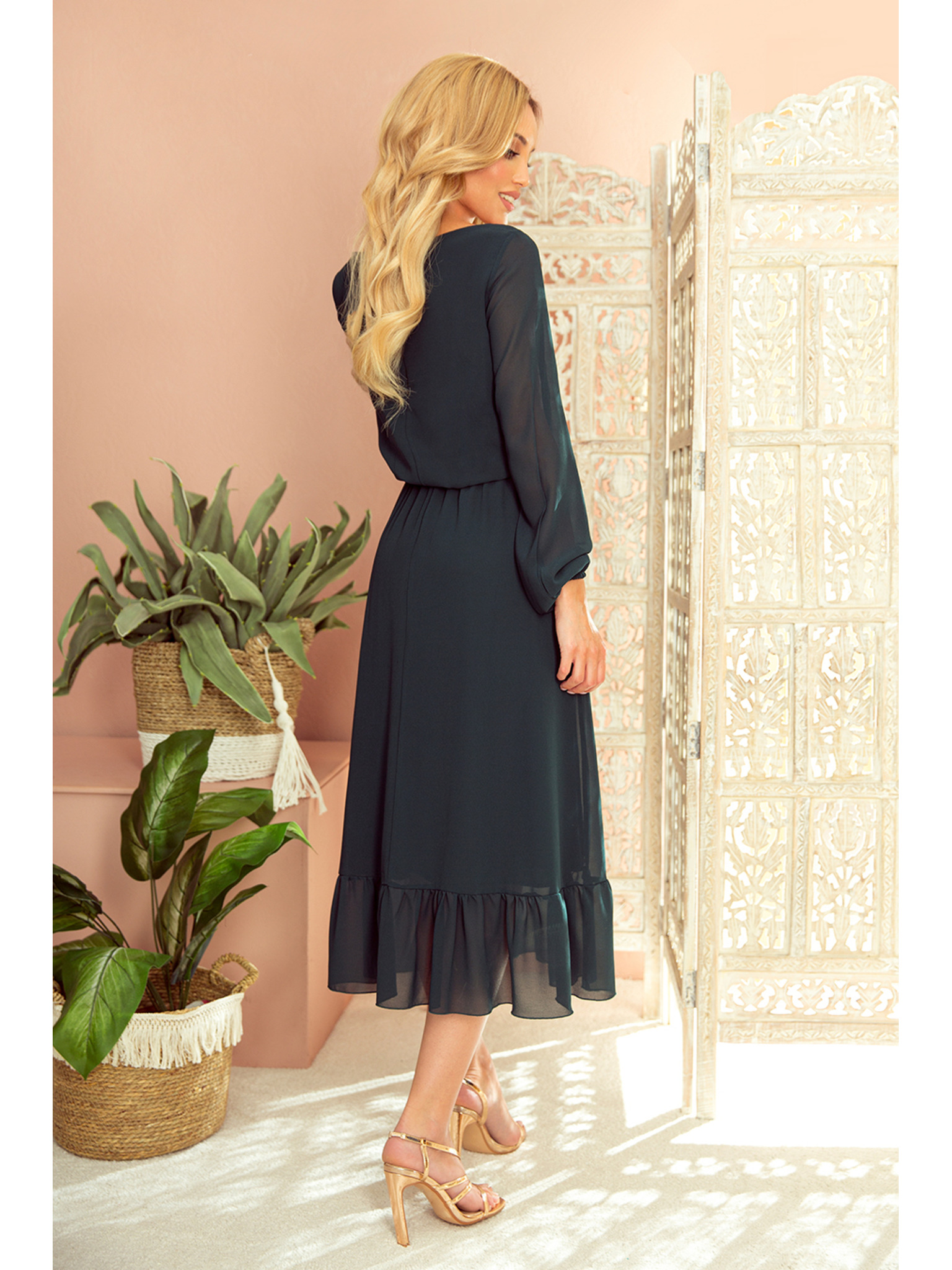 Hosszú JENNIFER ruha oldalsó hasítékkal - palackzöld