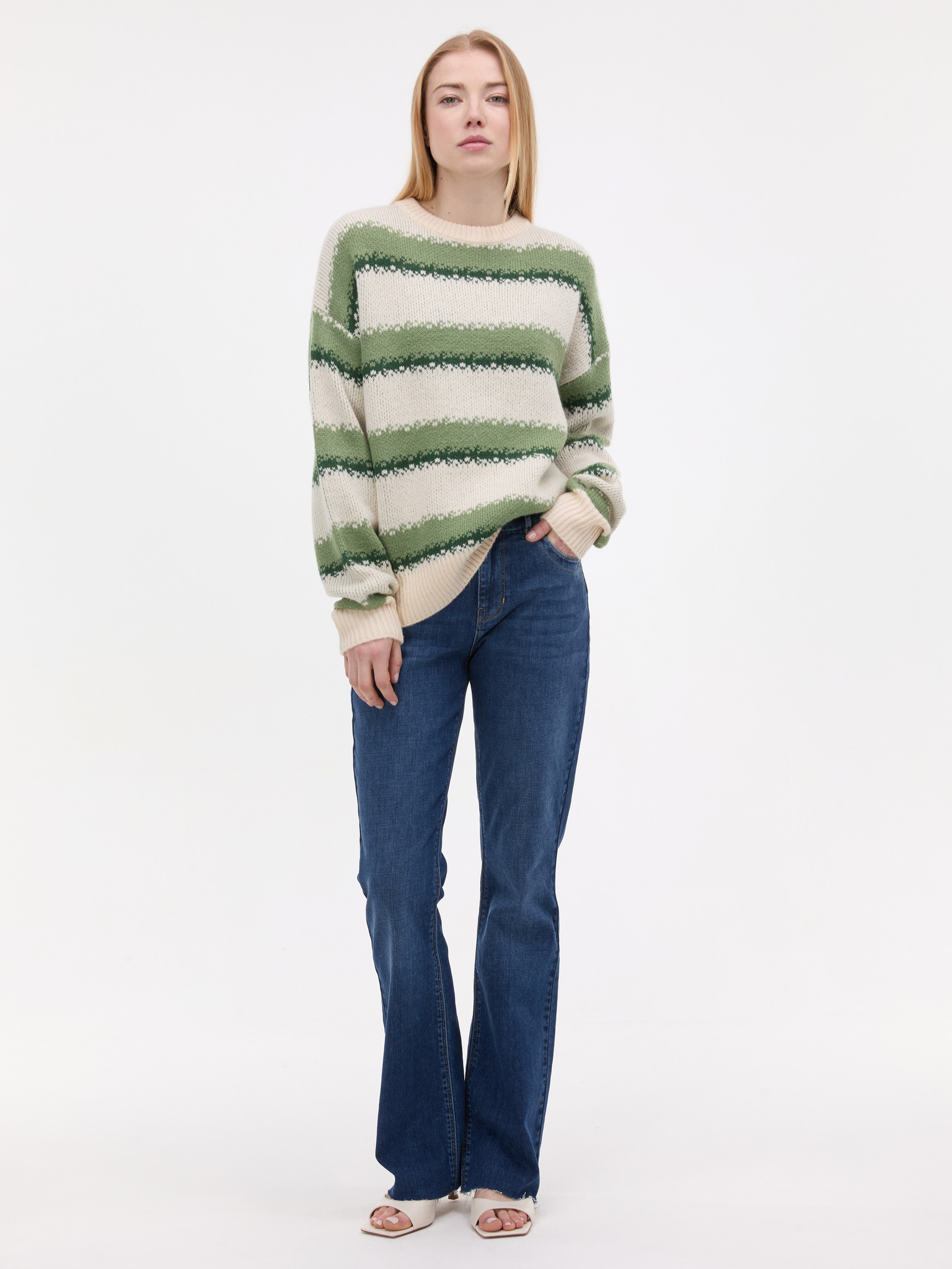ORSAY zöld-sárga csíkos női pulóver