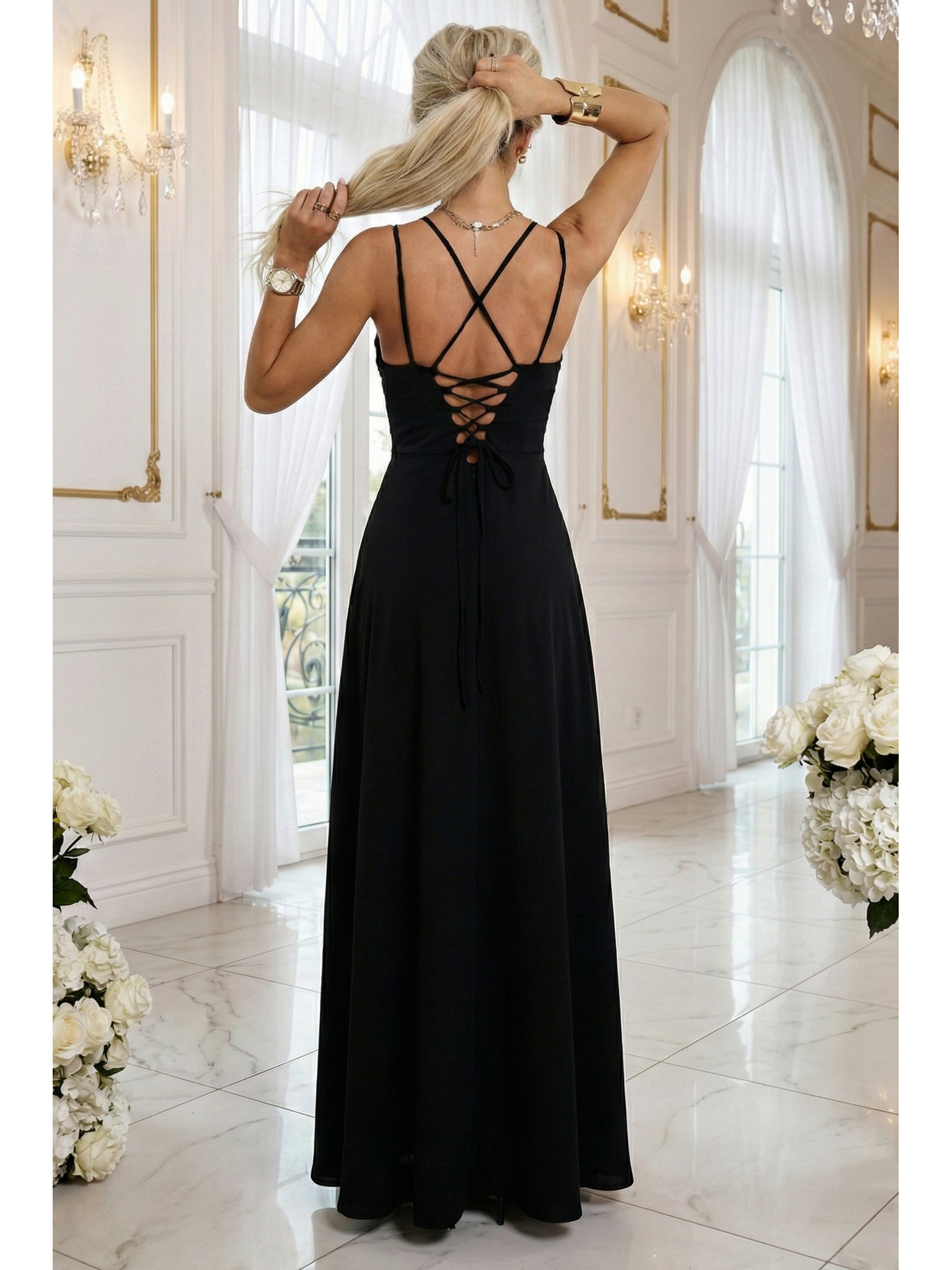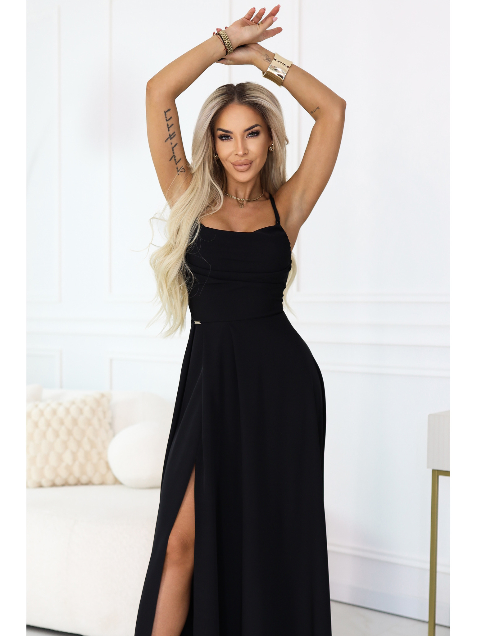 Hosszú JENNIFER ruha hasítékkal - fekete