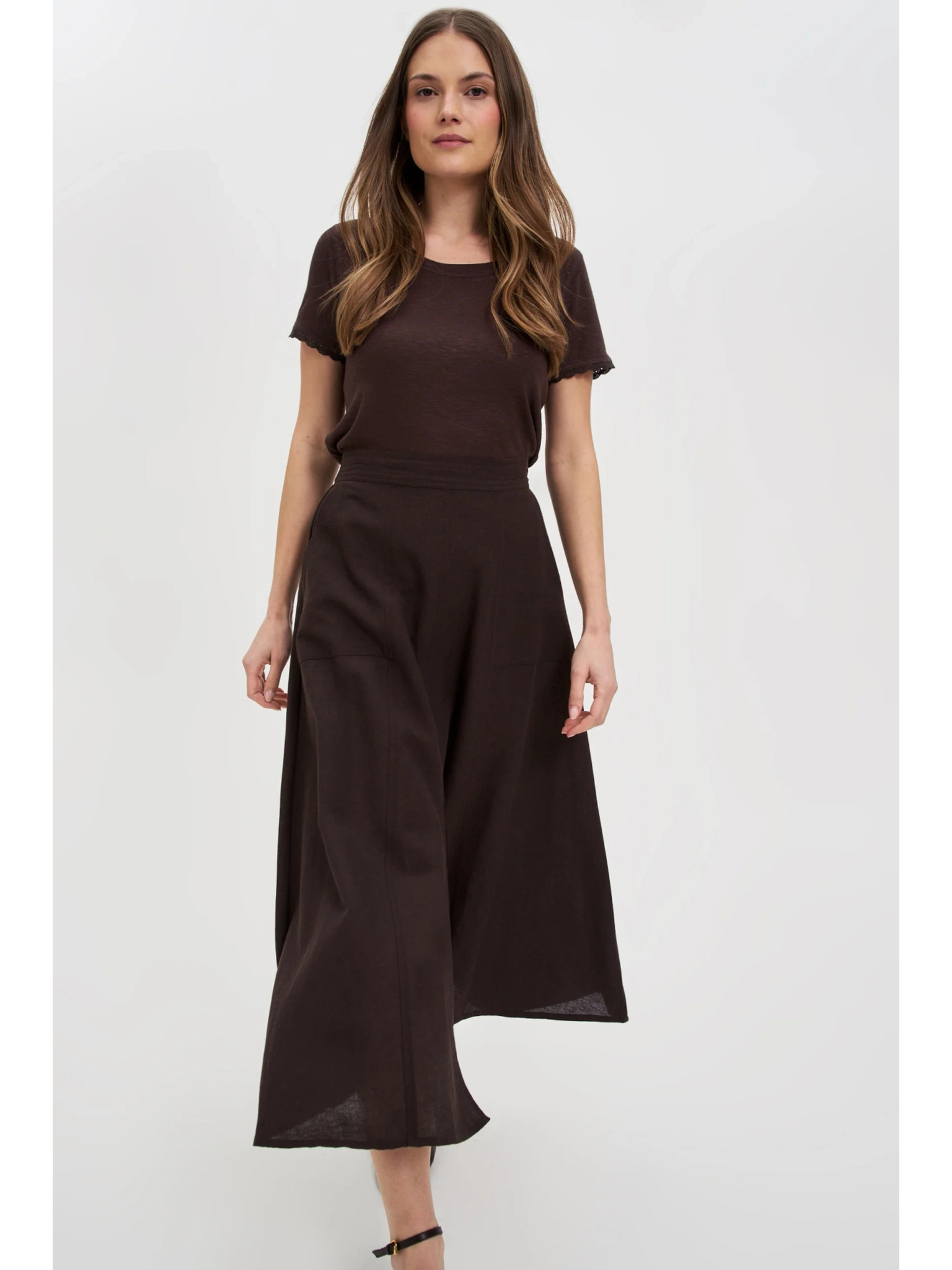 Moodo női póló zsebbel – sötétbarna