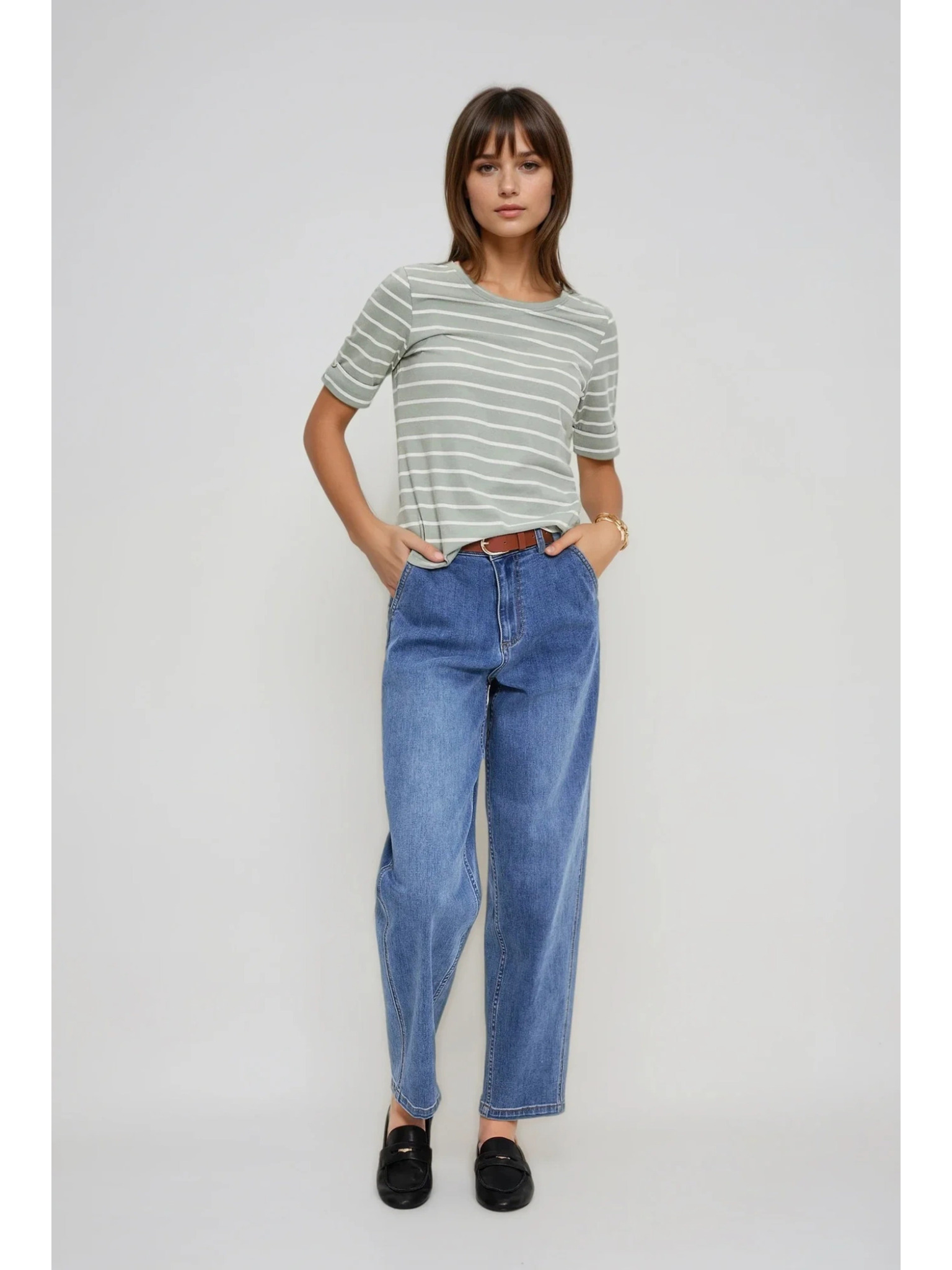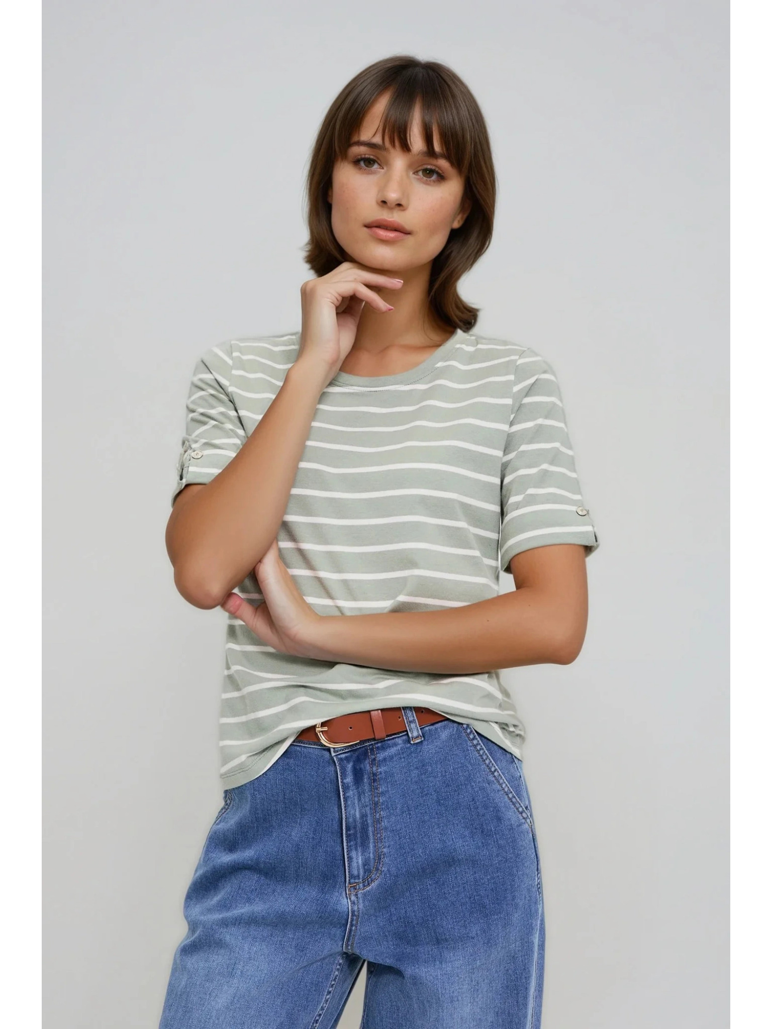 Moodo női felső zsebbel - olívazöld