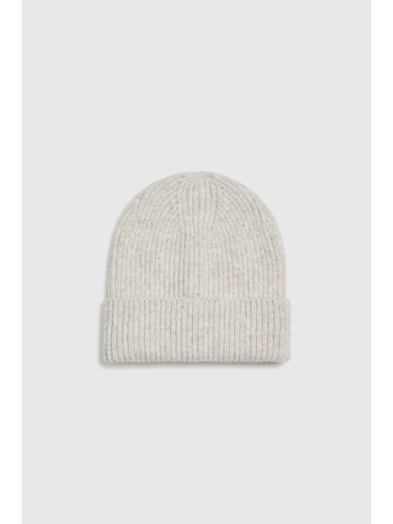 Sapka metálfényű fonallal, bézs Moodo
