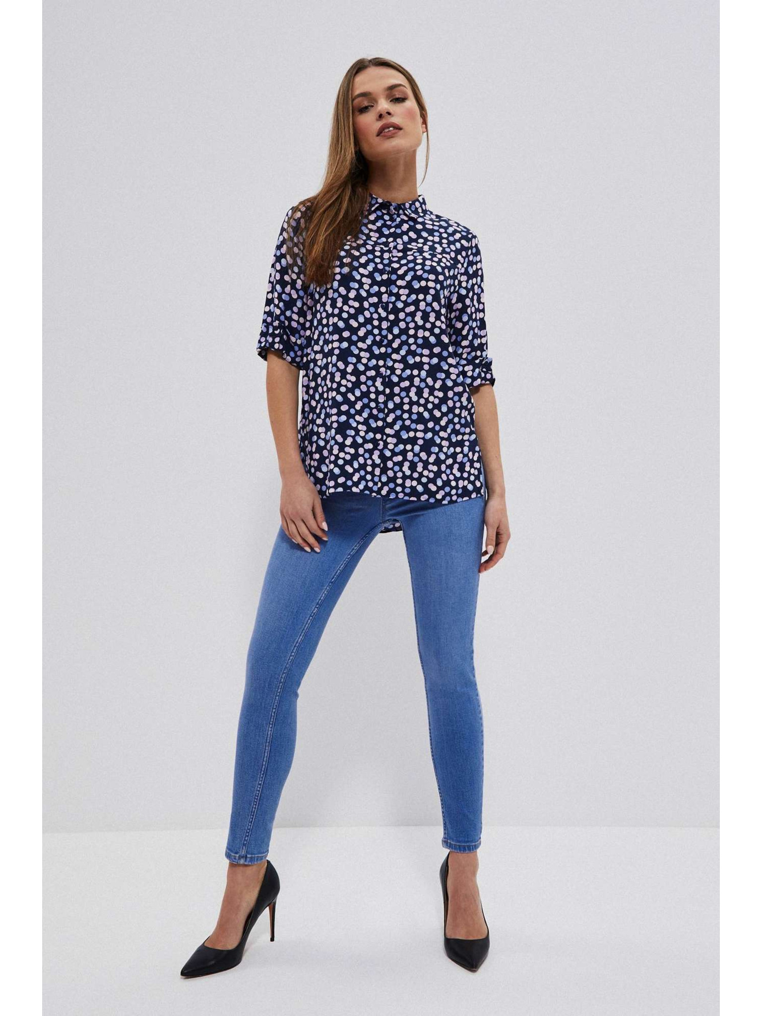 • modell méretei: A képen látható modell: magasság - 175 cm, méretek 80/61/95, méret Moodo-ban - felső-XS, alsó-S