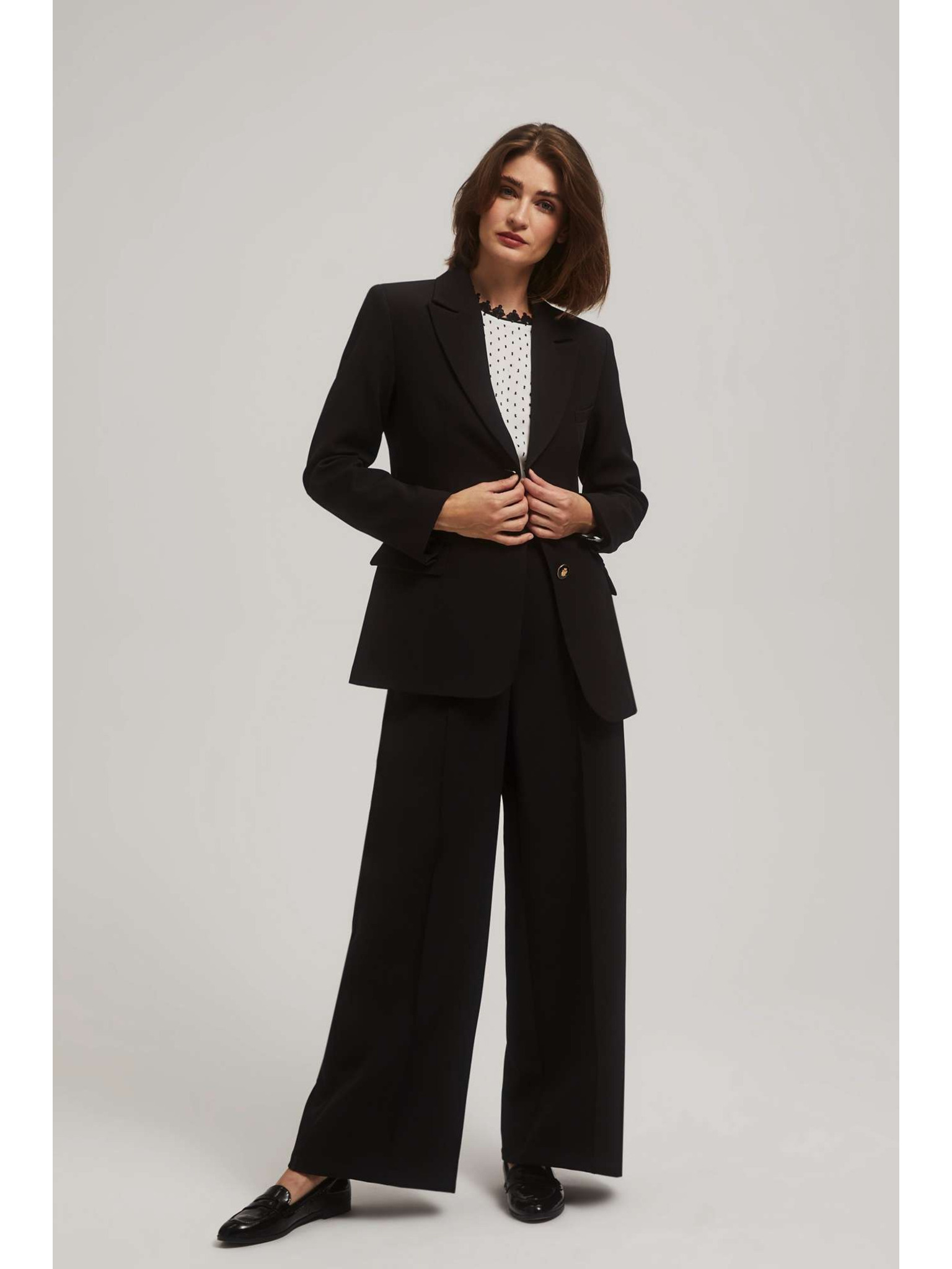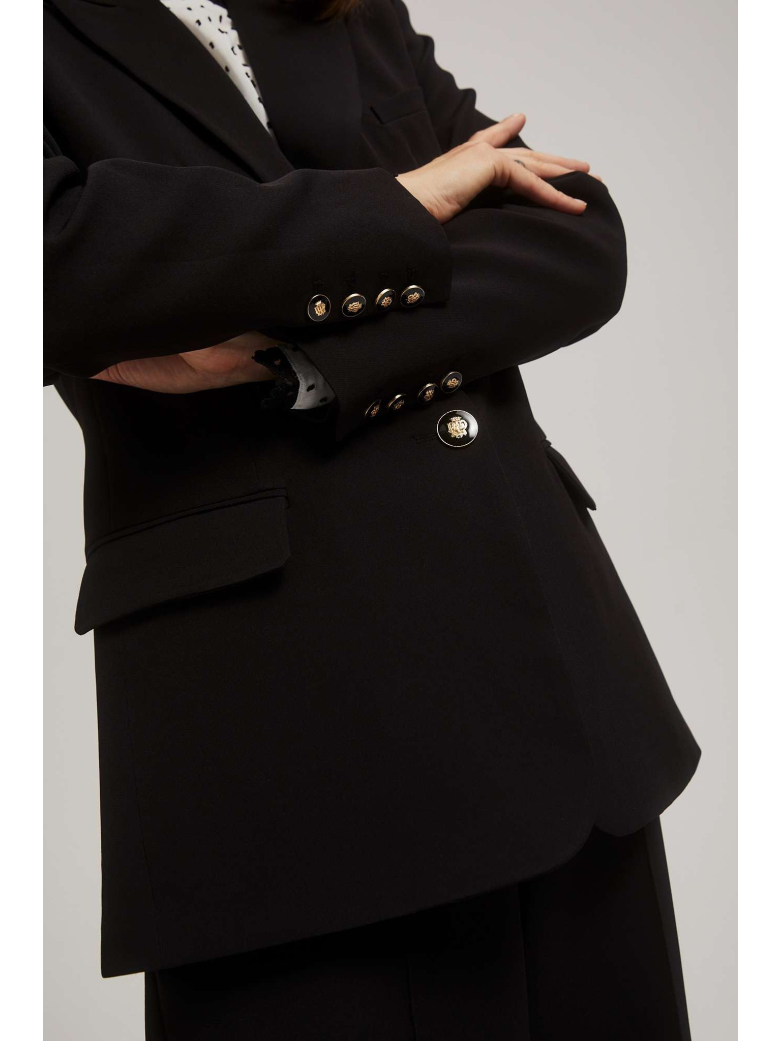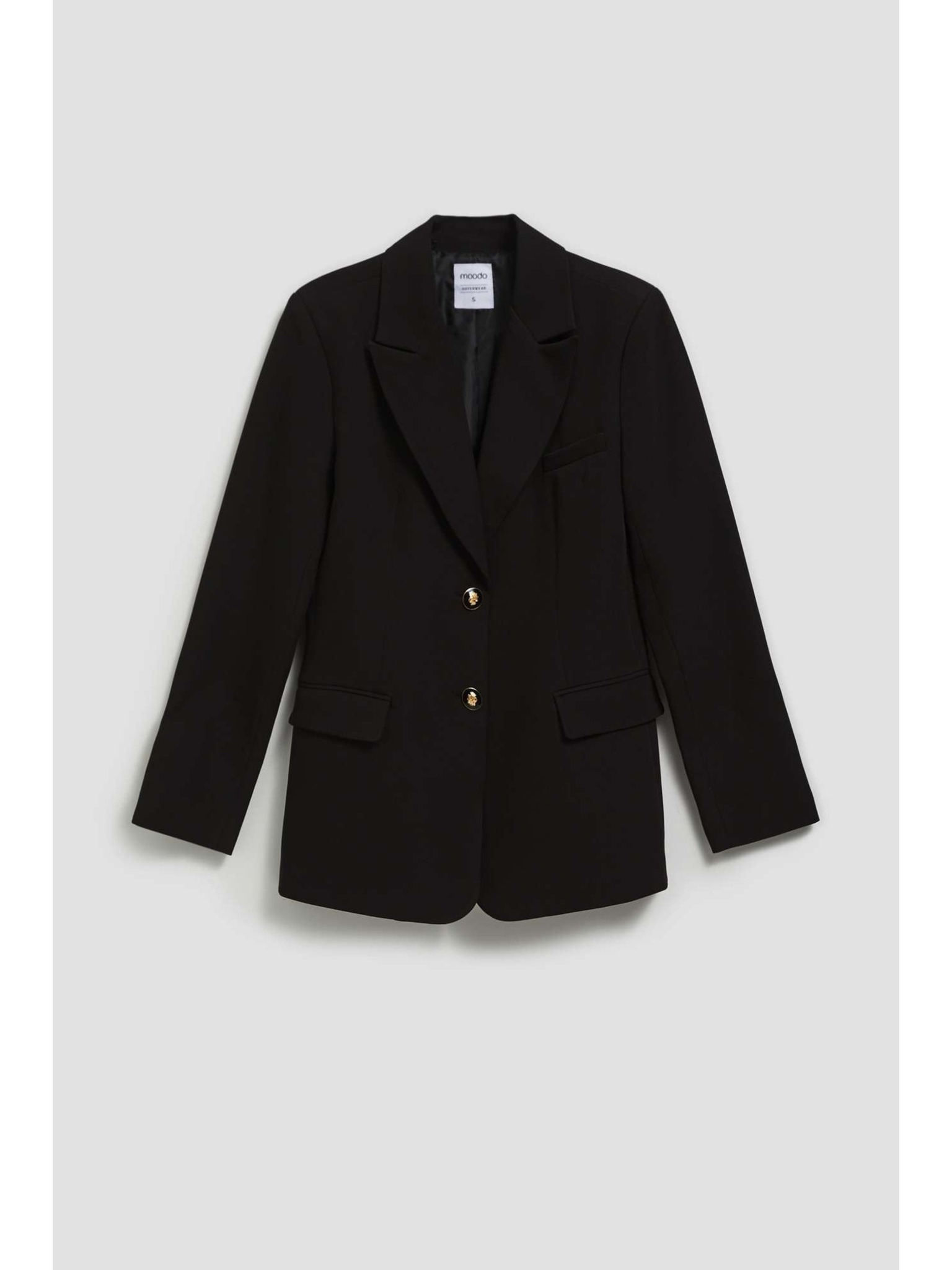 Elegáns fekete zakó díszes hajtókával Moodo