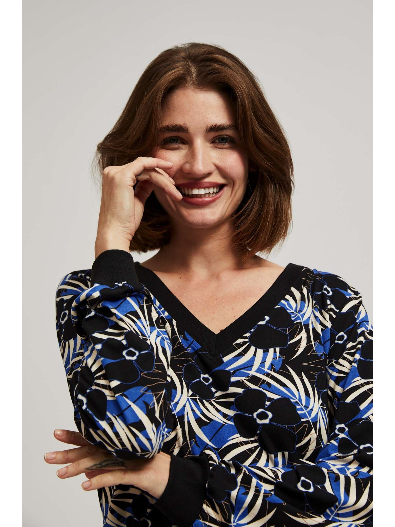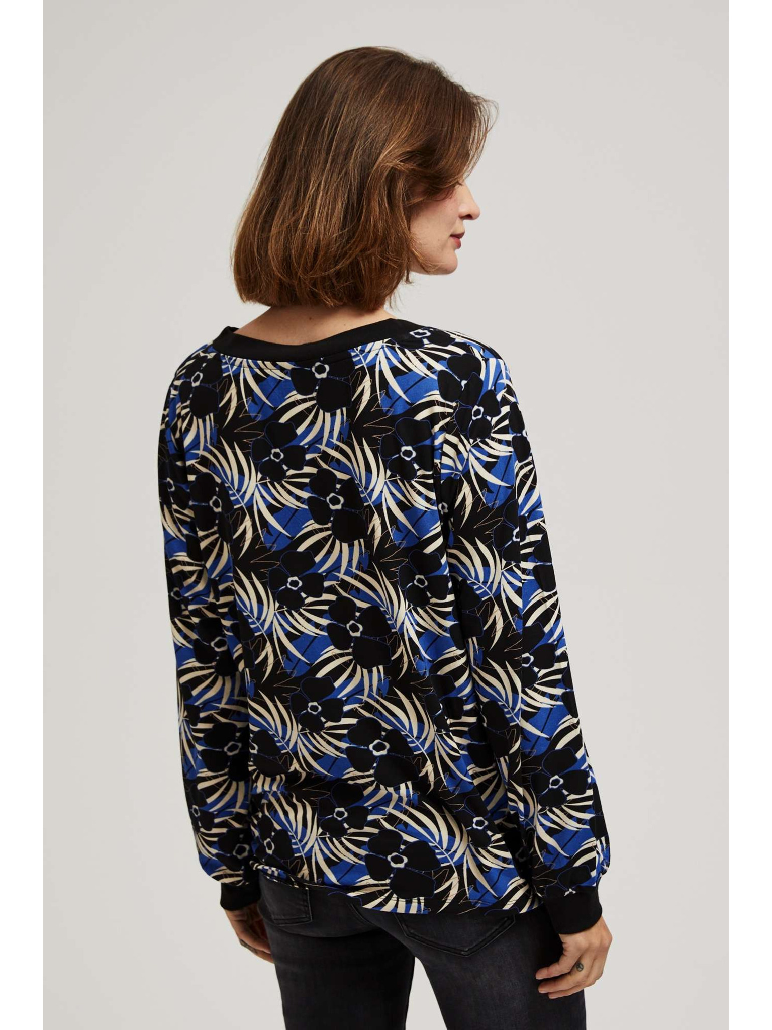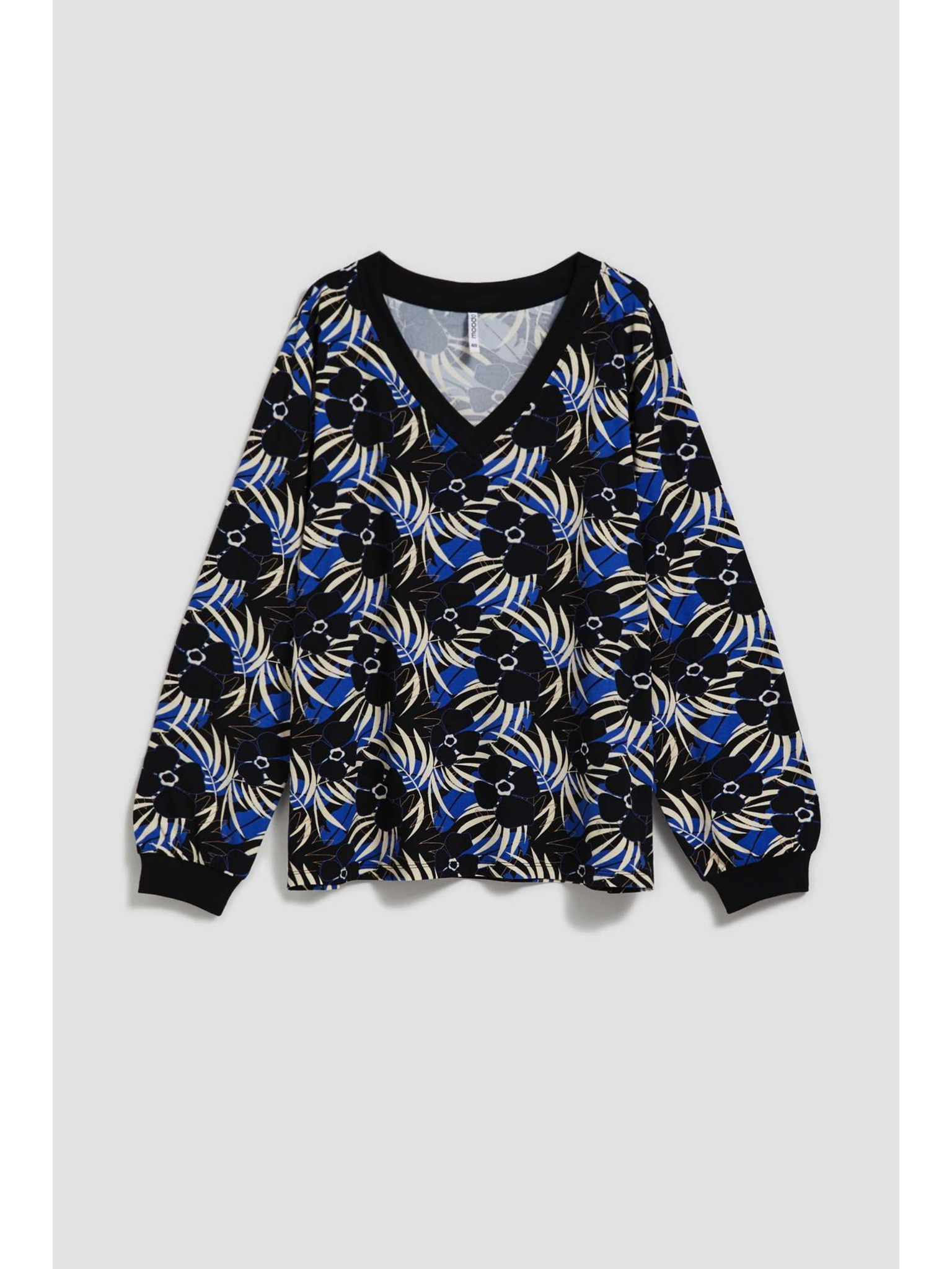 Fekete V-nyakú mintás blúz Moodo