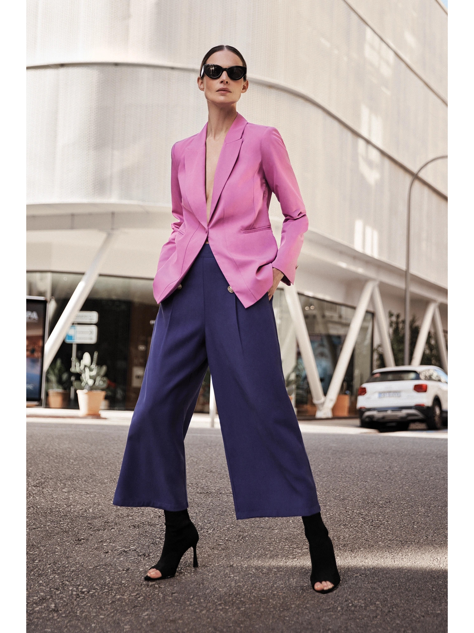 • modell méretei: A képen látható modell: magasság - 175 cm, méretek 89/62/90, a képen látható méret - felső-M, alsó-M