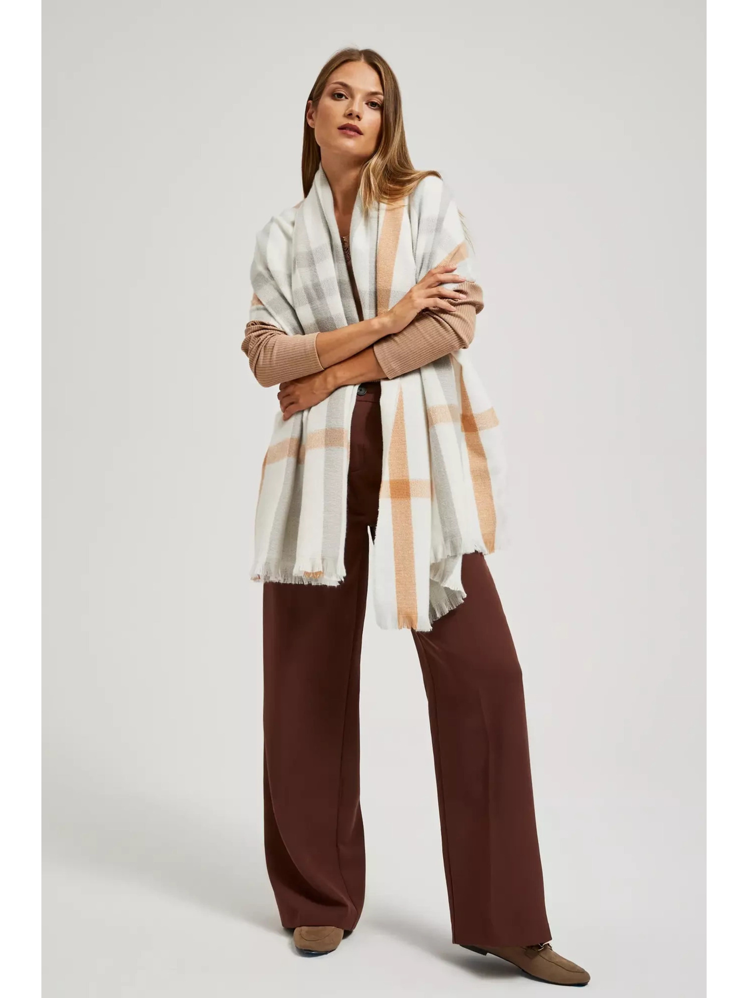 Mintás bézs sál Moodo